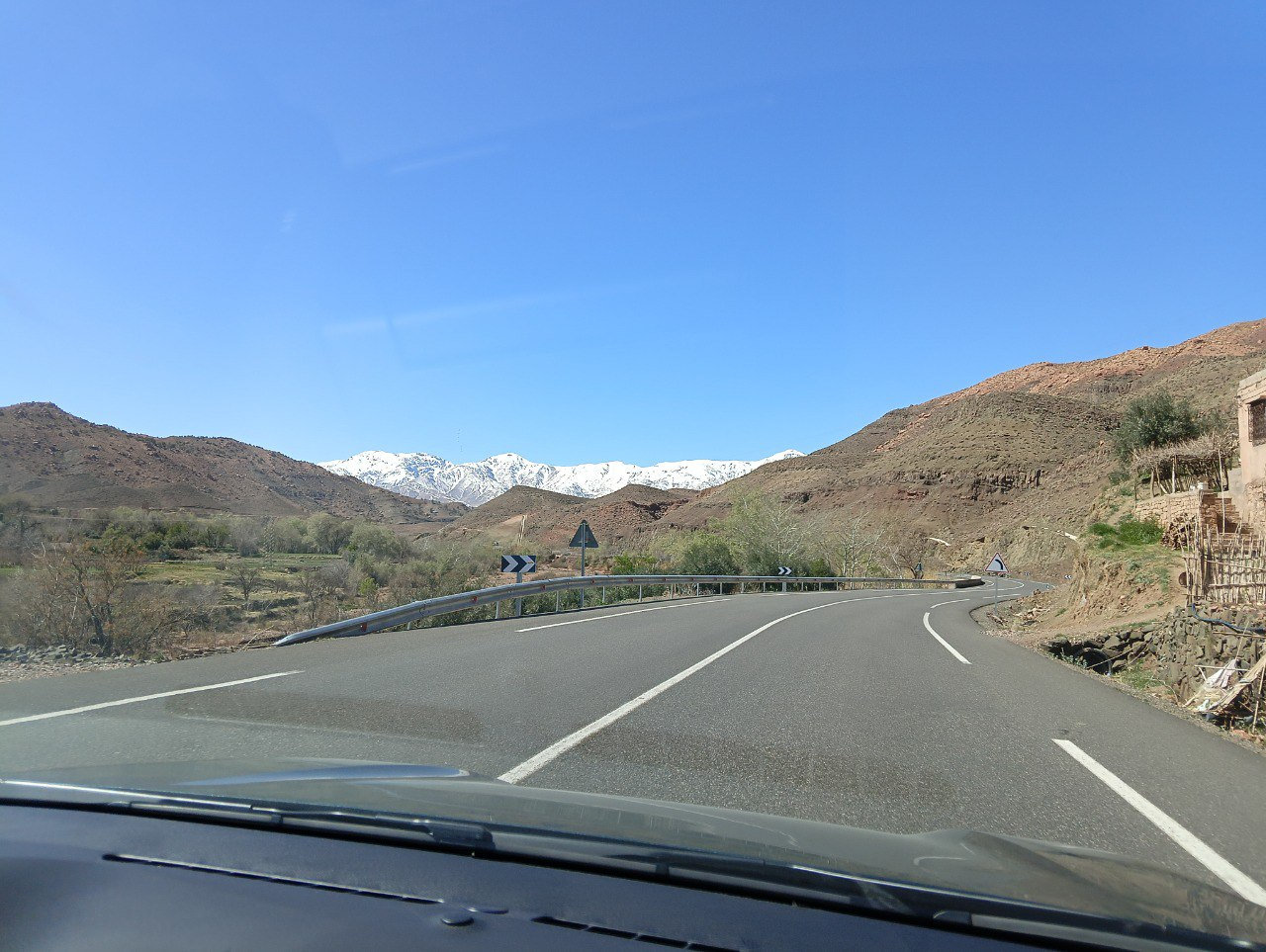 Мы в Марракеше арендовали машину и поехали через Атласские горы в пустыню Сахара. Сложно было в самом Марракеше из-за множества мотоциклистов, которые подрезают как машины на дороге, так и пешеходов на тротуаре. И на перевале в Атласских горах: серпантин, местами небольшие обвалы, во время нашего пути туда был сильный снегопад, сугробы и плохая видимость. На обратном пути светило солнце. Везде дороги с отличным асфальтом, без ям, вне Марракеша ехать комфортно.