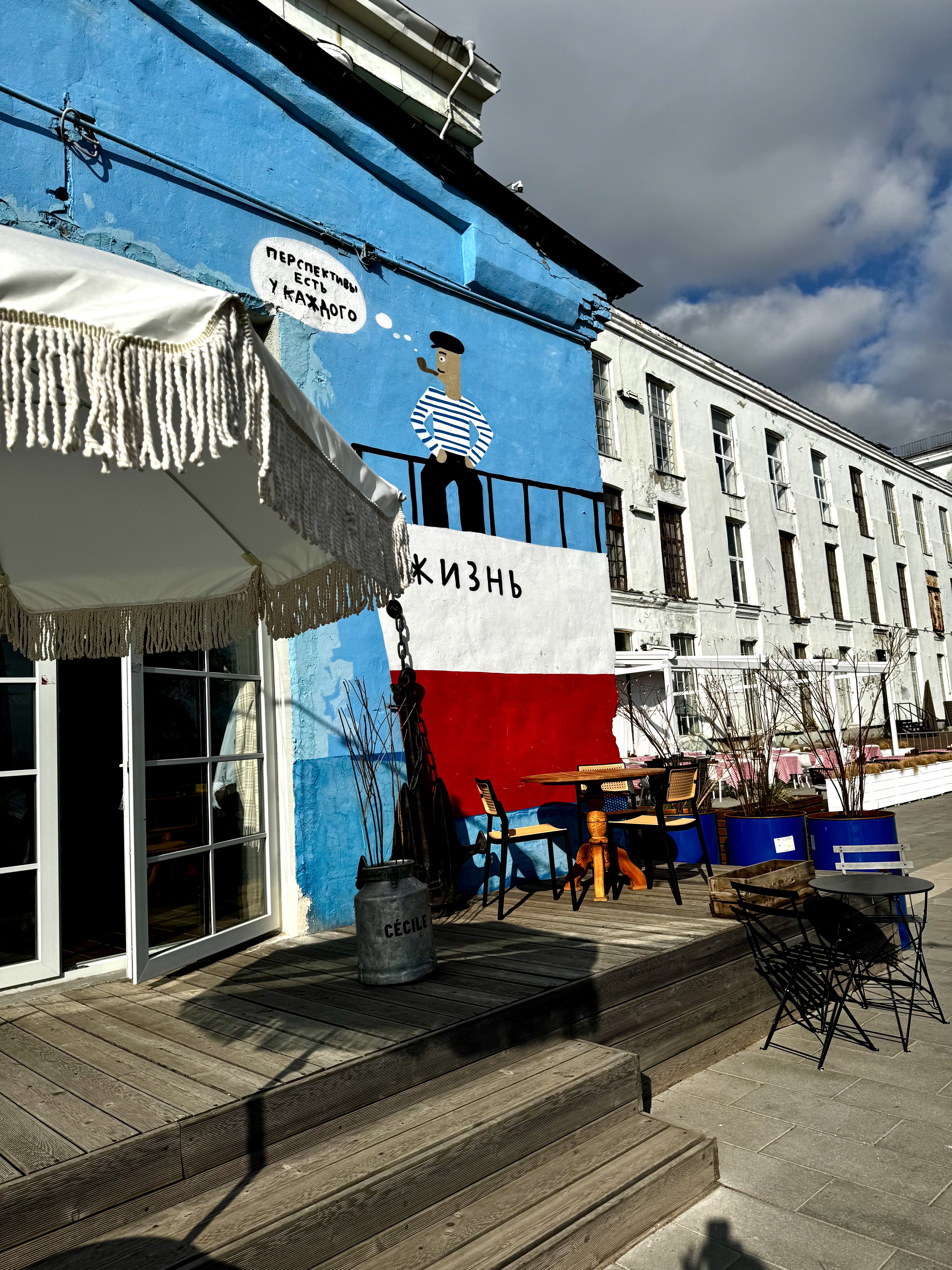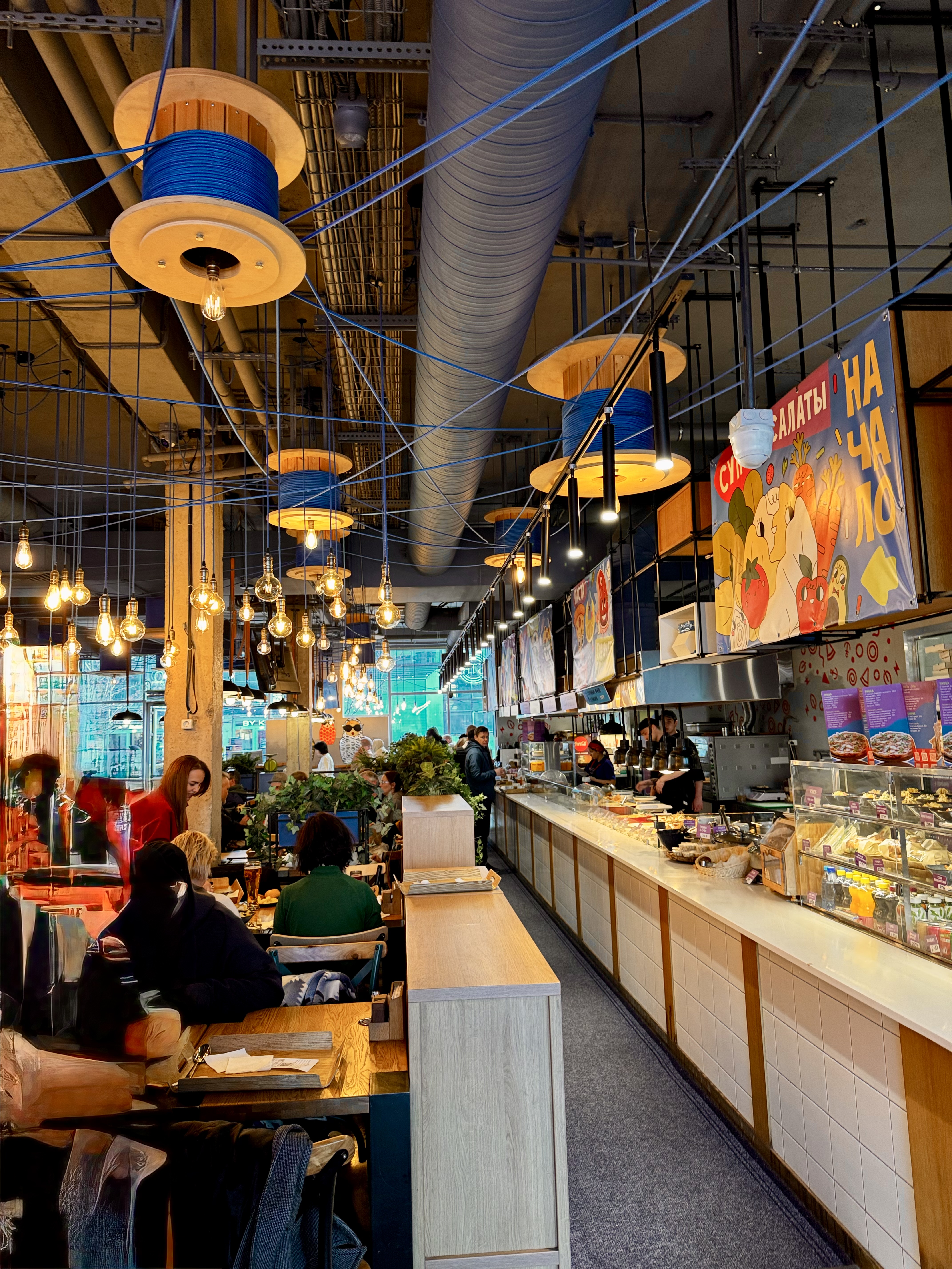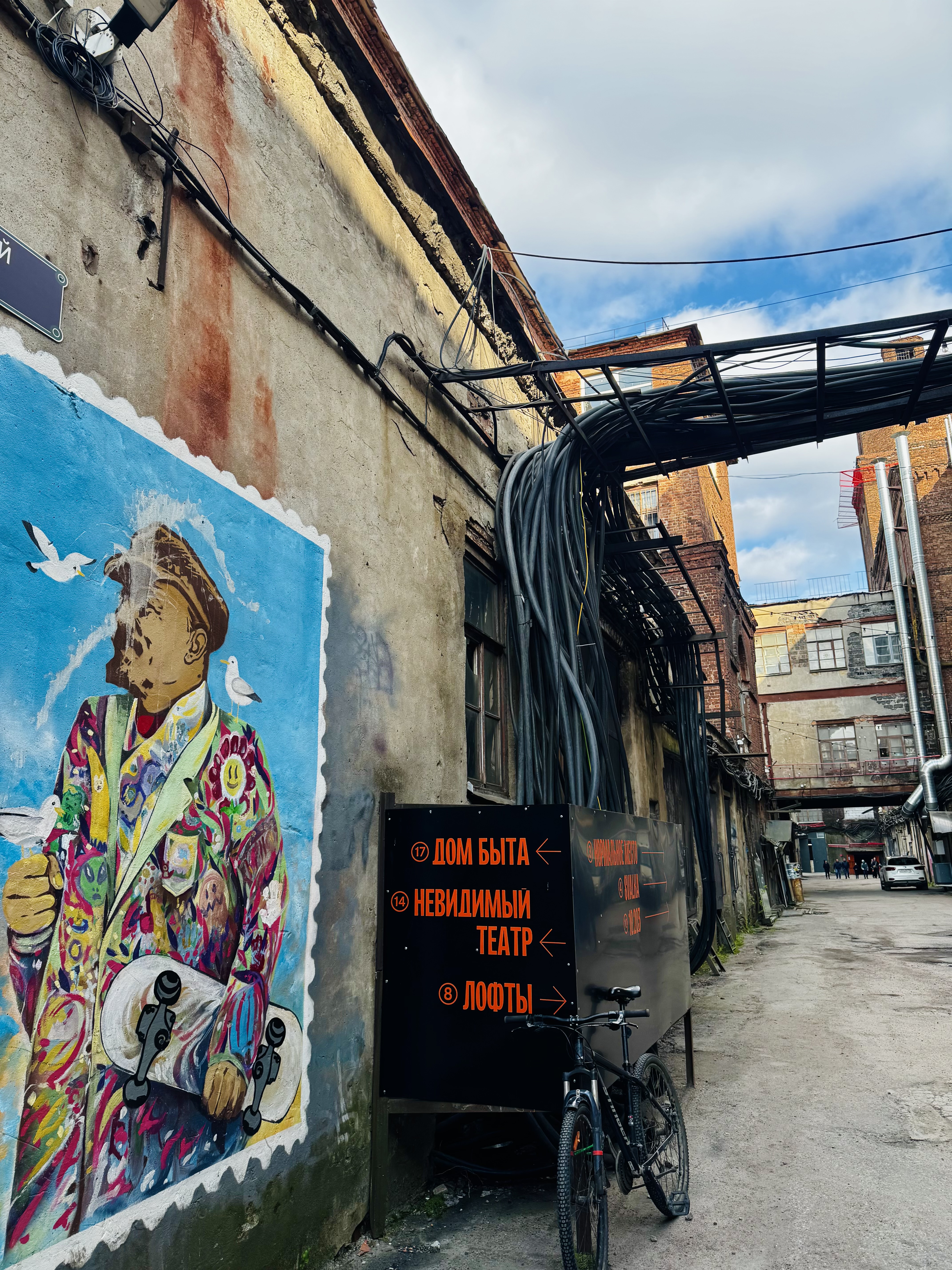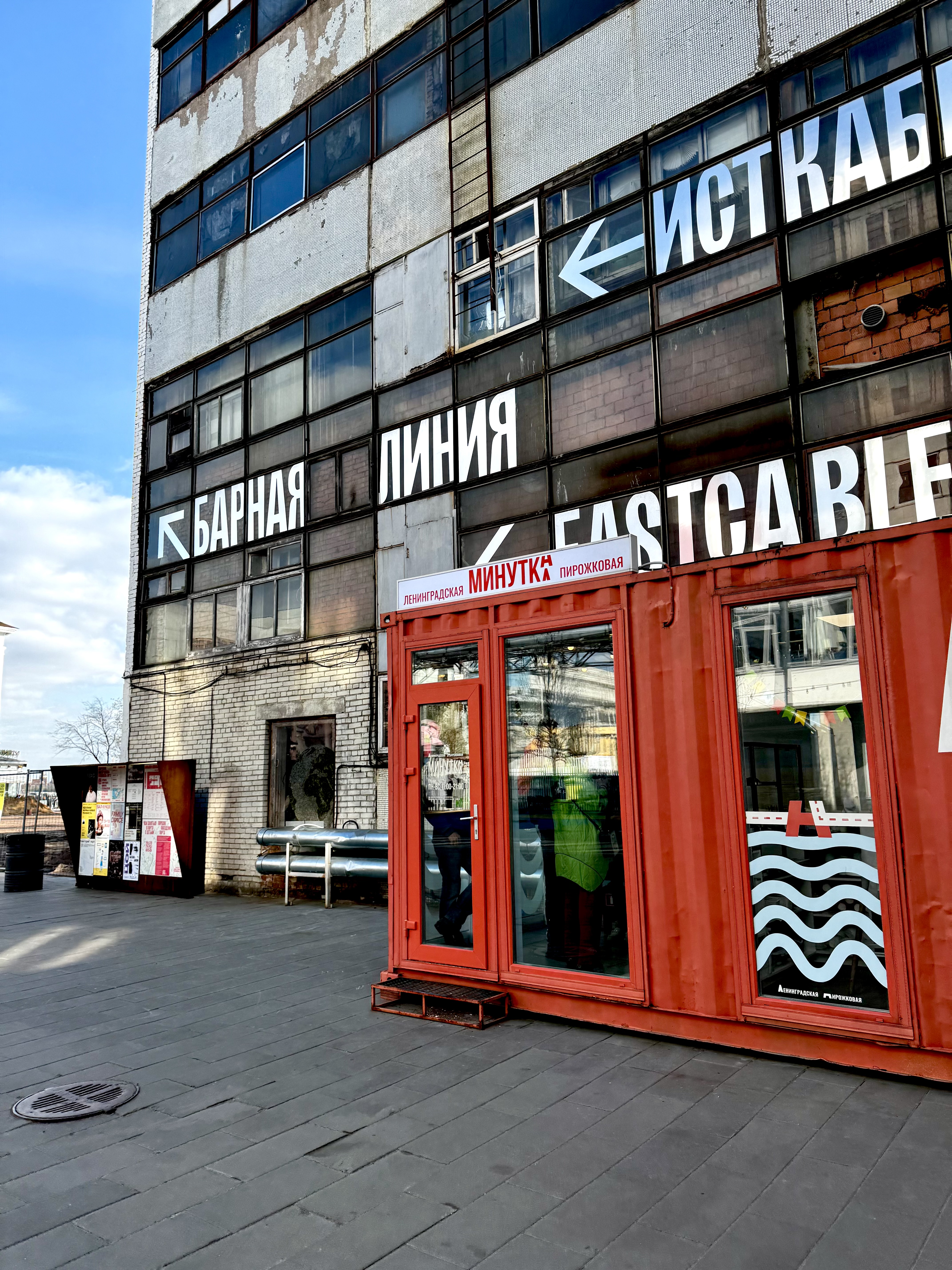 Порт Севкабель — культурно-деловое пространство на месте бывшего завода Сименс по производству кабелей, проводов, ламп, медного проката. Сохранили суровую атмосферу с катушками кабеля) что придает особый шарм месту)