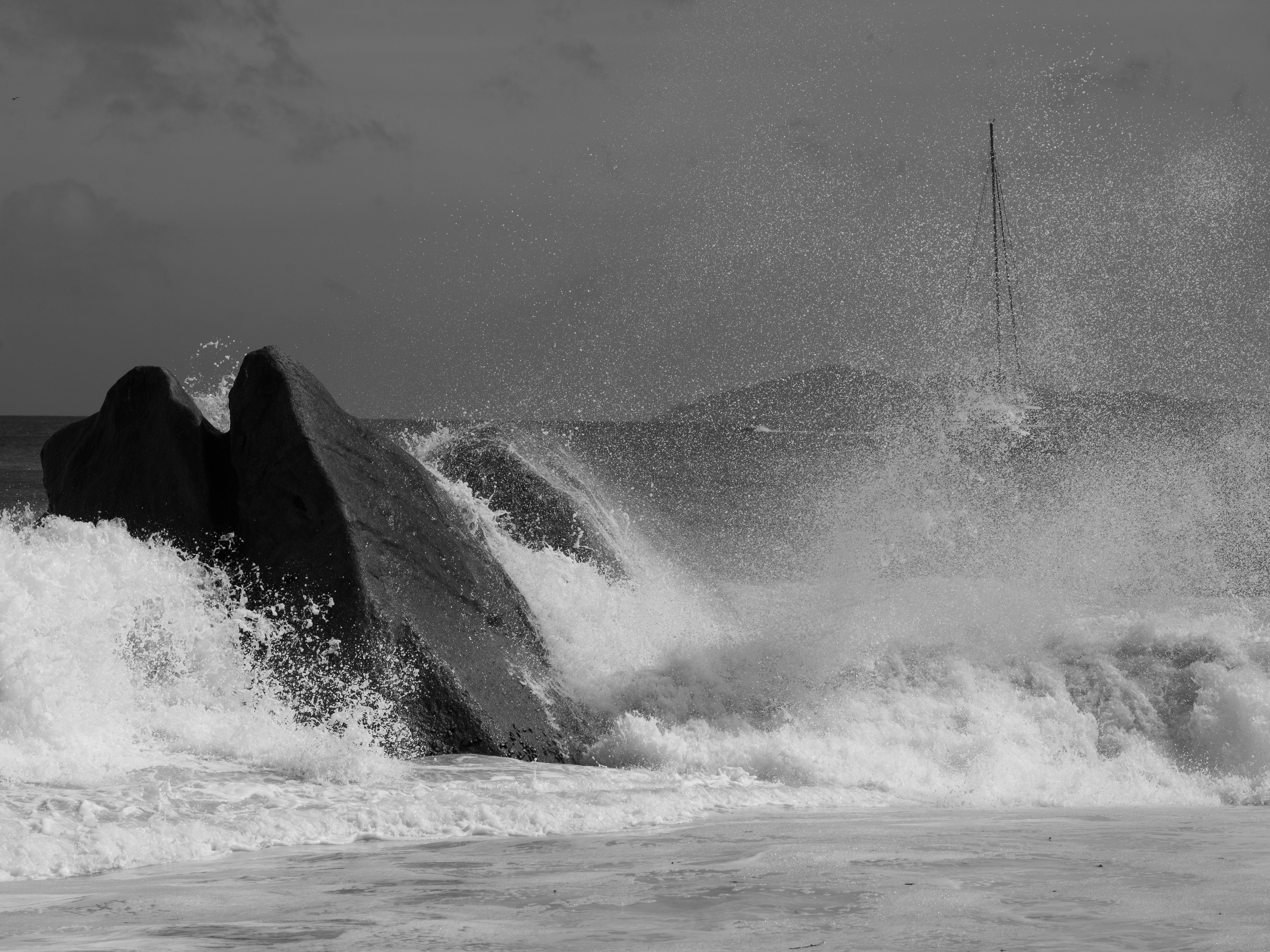 Море может быть неспокойным. В день посещения знаменитого пляжа Анс-Лазио на севере острова Праслин разыгрался нешуточный шторм, поэтому спокойно покупаться не получилось. Зато удалось сделать снимки бущующей стихии. Зато пляж Кот-д’Ор на востоке острова порадовал приятными условиями.