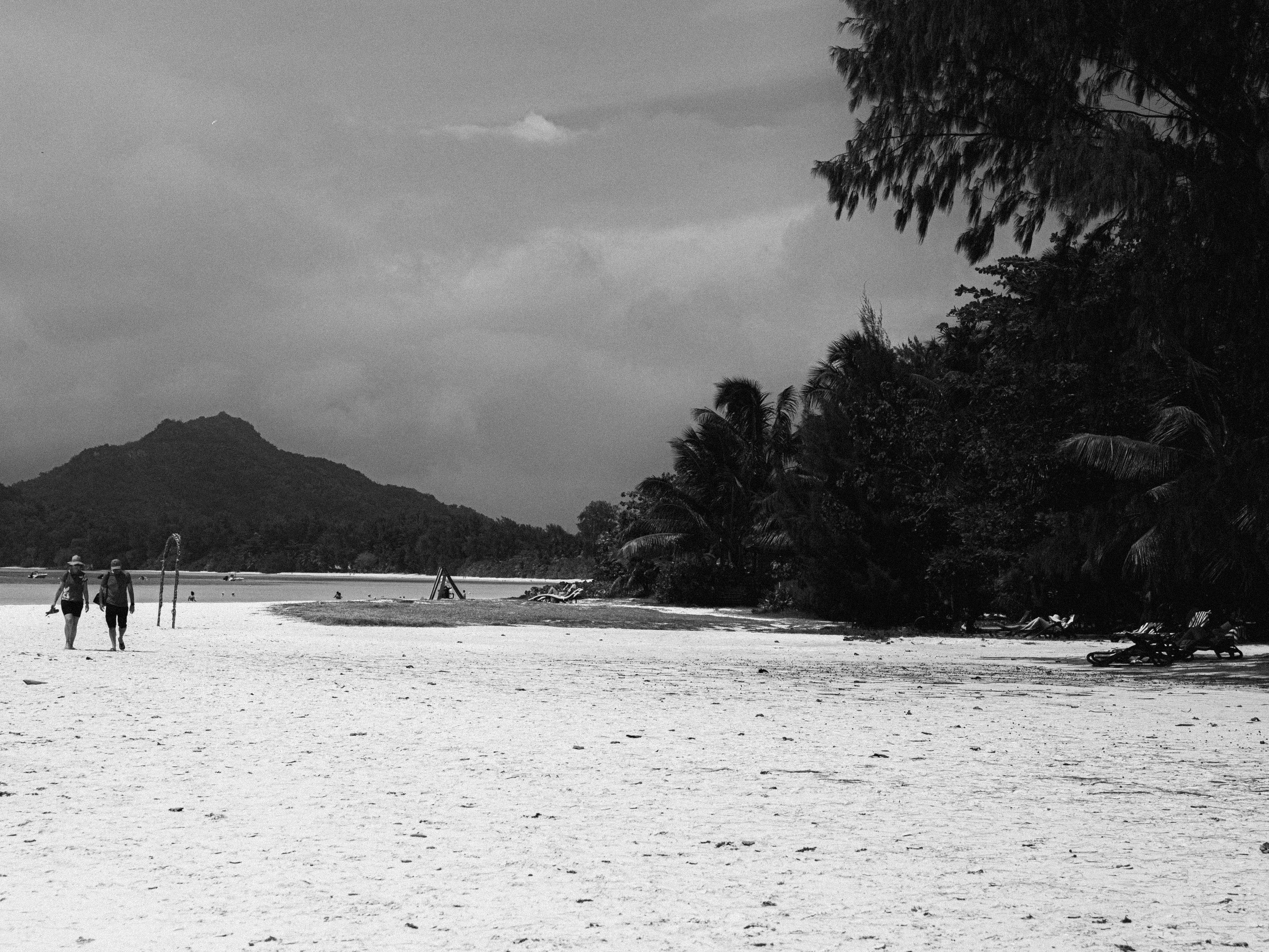 Пожалуй, главная визитная карточка Сейшел — знаменитый пляж Бо Валлон. В августе на Сейшелах зима, и песок усыпан опавшей листвой. Впрочем, это никак не мешает ни отдыхающим, ни местным жителям, которые ходят купаться днем, а ночью устраивают посиделки с музыкой.