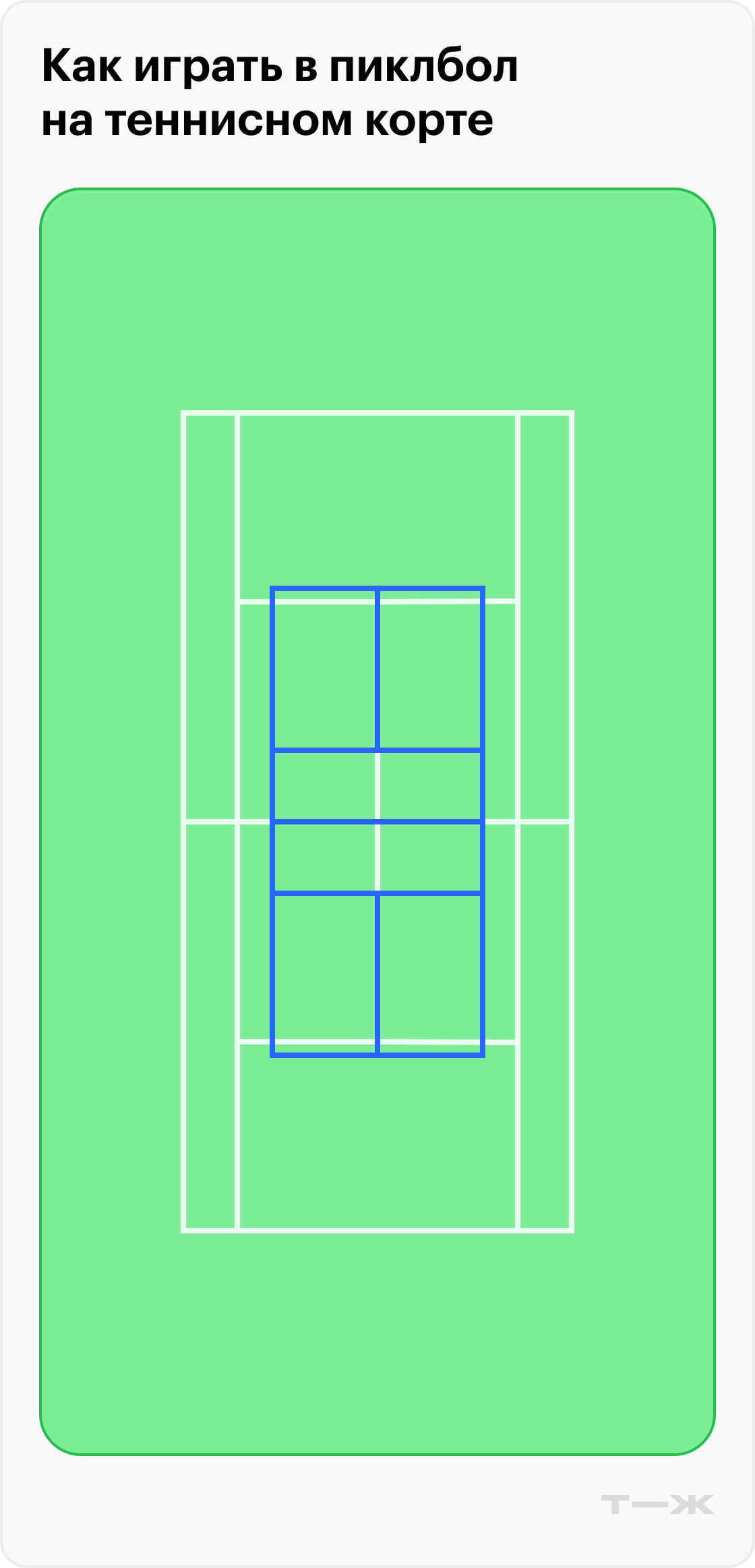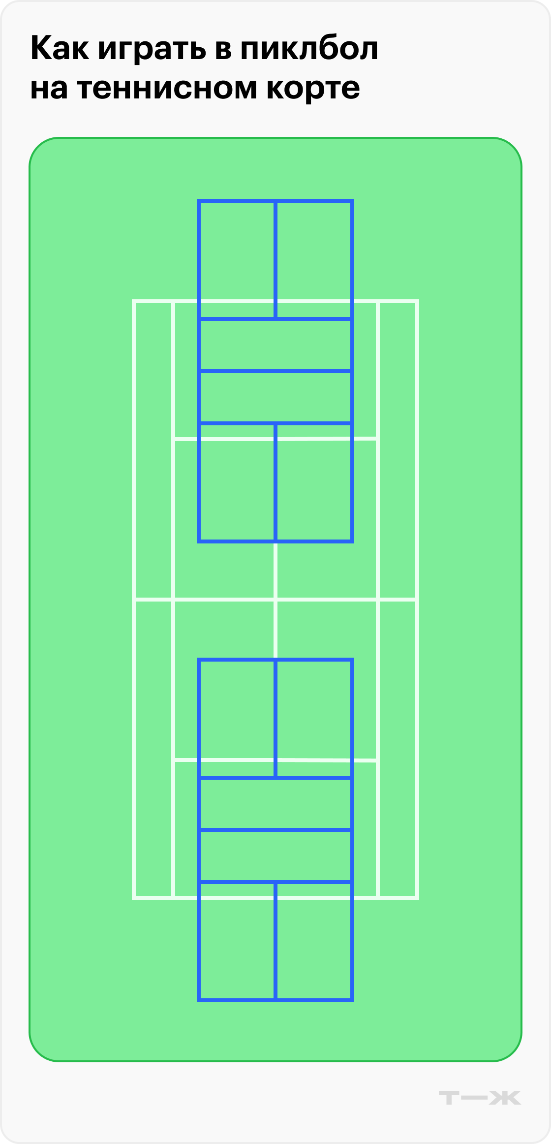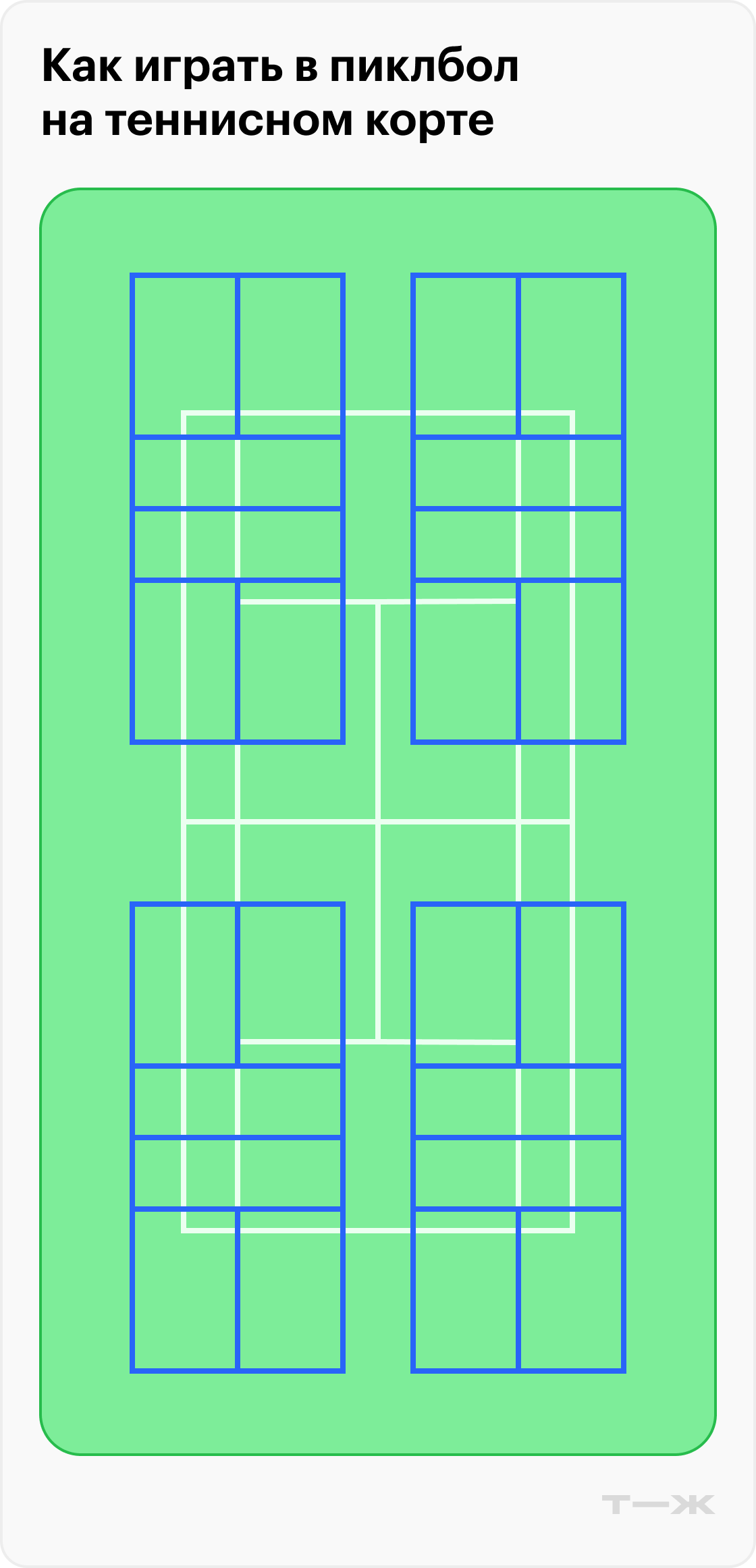 Теннисная площадка больше — на одном теннисном корте можно разместить до четырех пиклбольных. Играть в таких условиях возможно, но с оговорками. Что нужно изменить:
