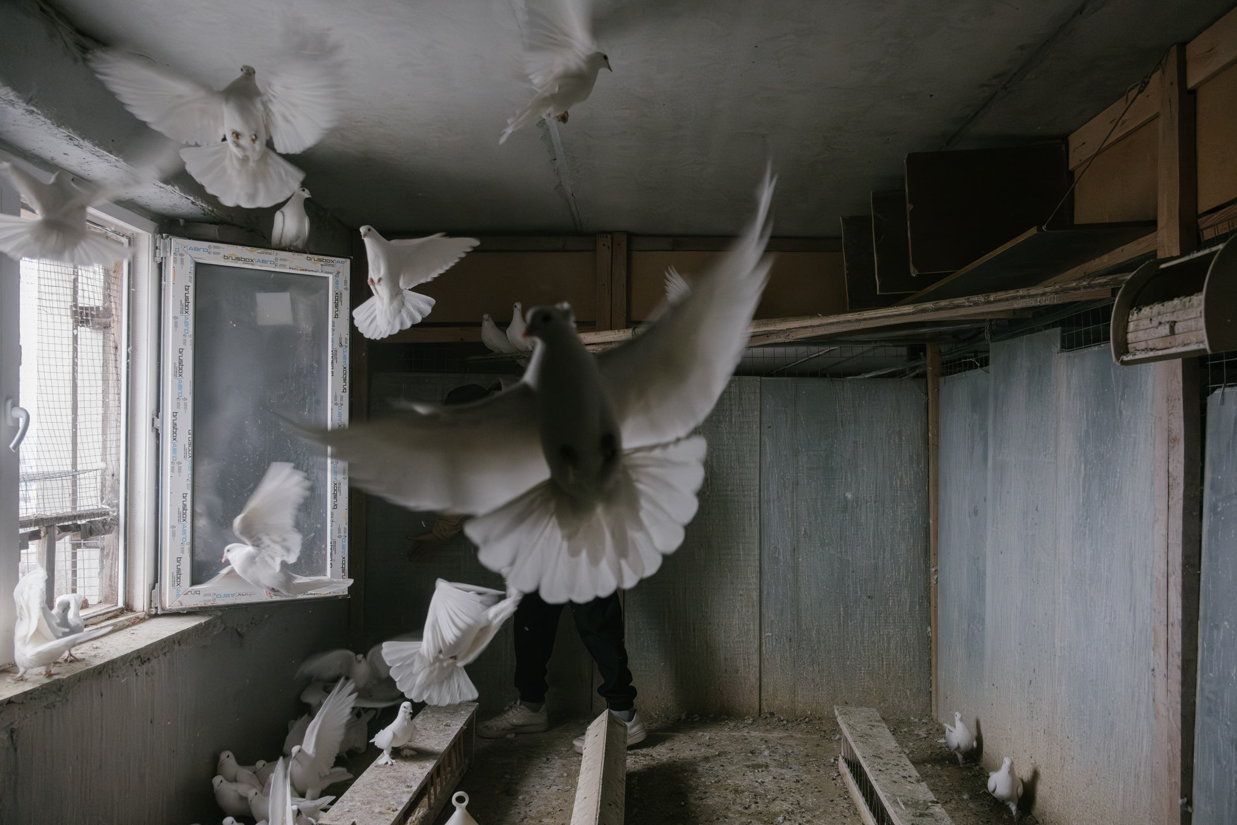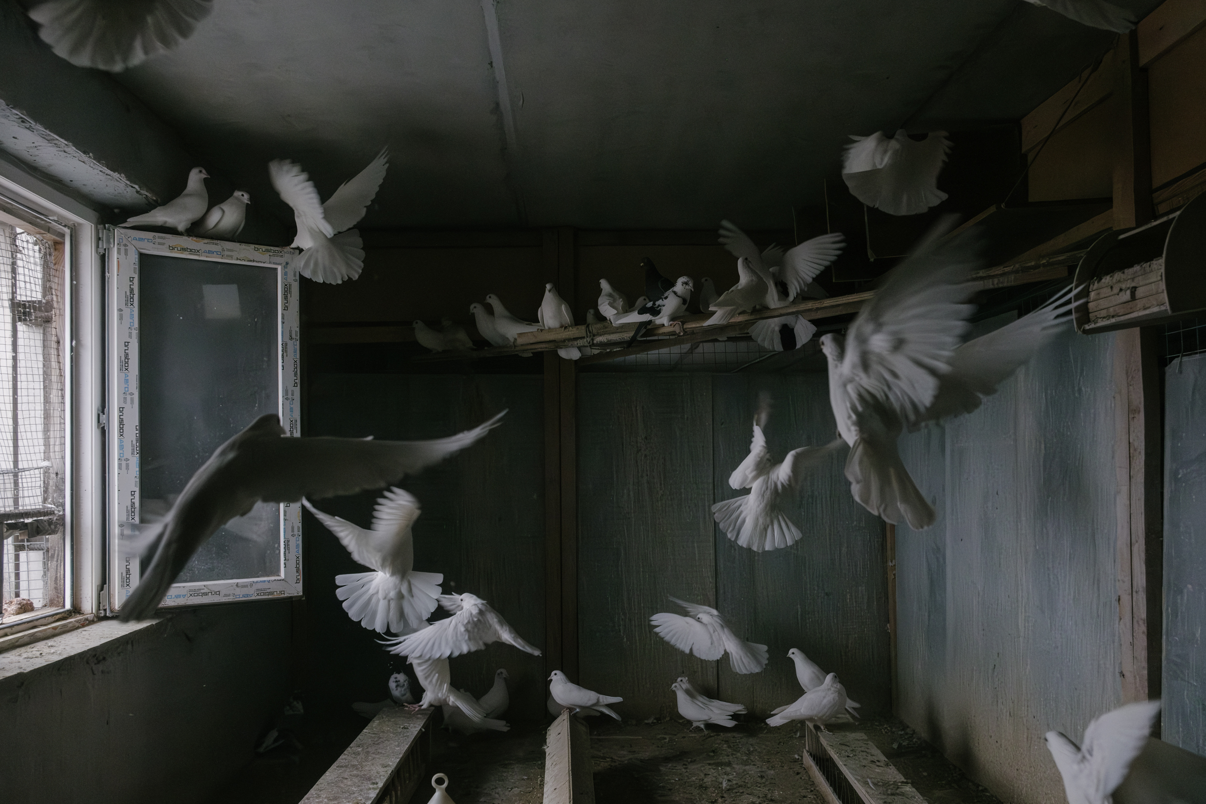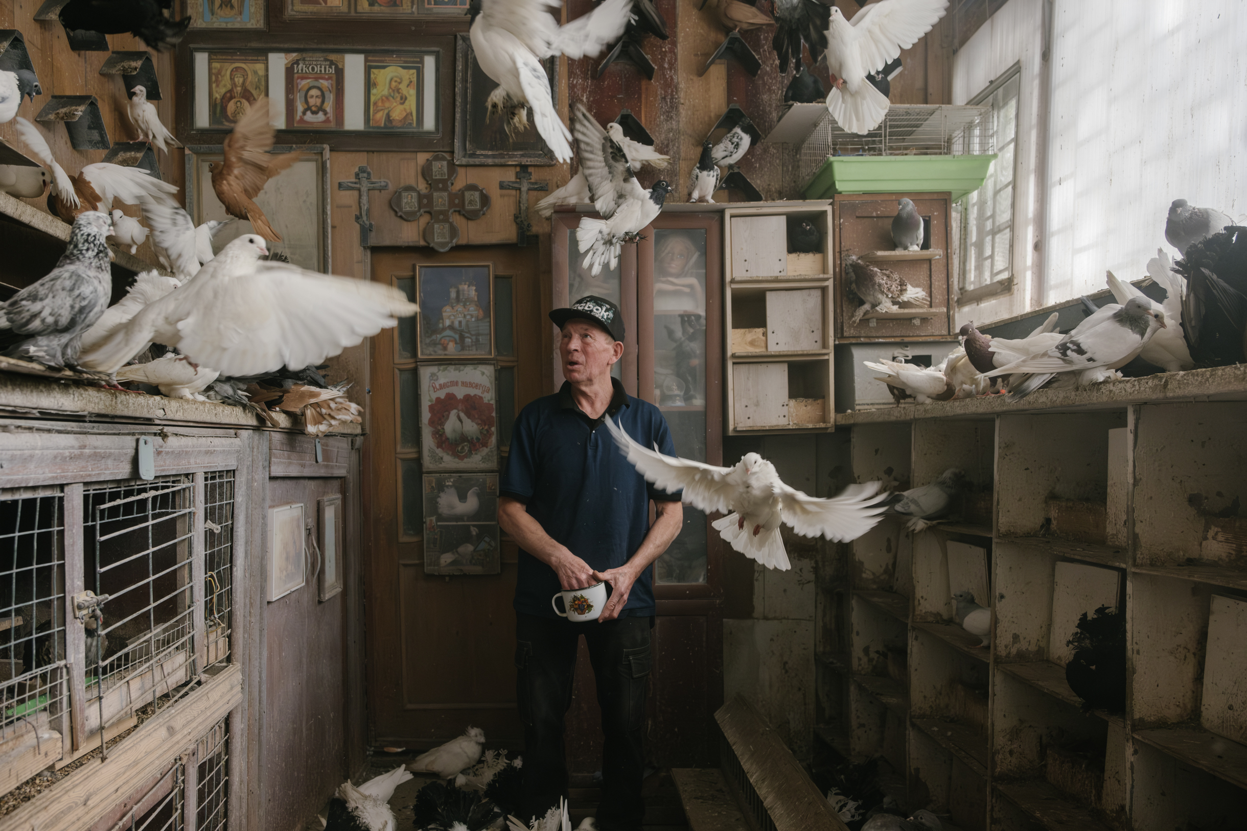 У Виктора Харлашина первые два голубя появились в шесть лет — это был подарок на день рождения от друга отца. Сейчас у Виктора около пяти тысяч голубей. По его словам, это самый большой питомник в стране.