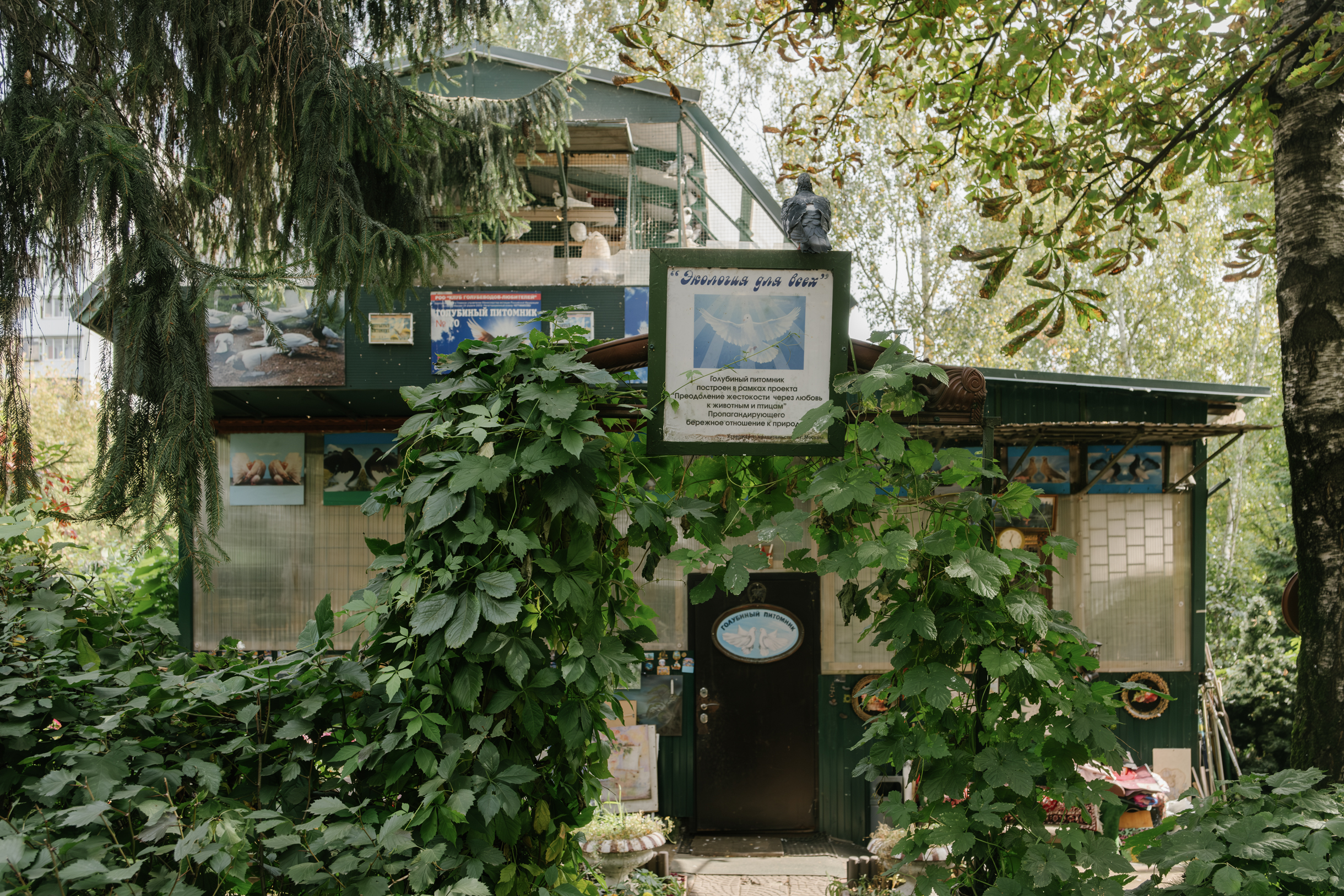 В Химках голубевод построил для своих птиц отдельный дом. Кроме большой голубятни, на участке стоит маленькая двухэтажная. Когда-то Виктор сделал ее сам, а сюда перевез как символ. Она тоже заселена: на первом этаже живут куры, на втором — голуби.
