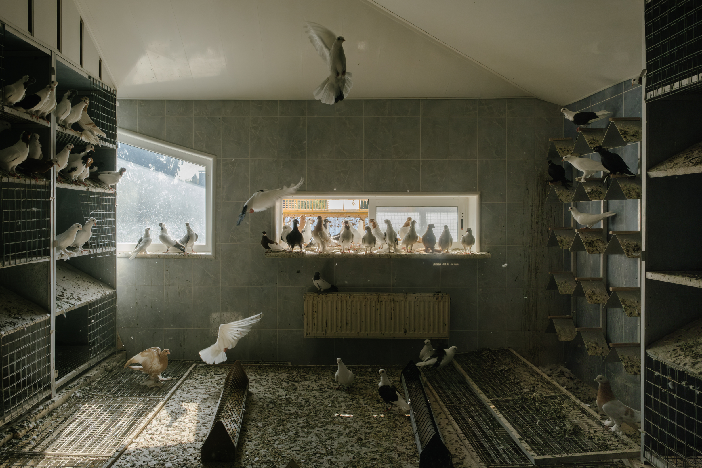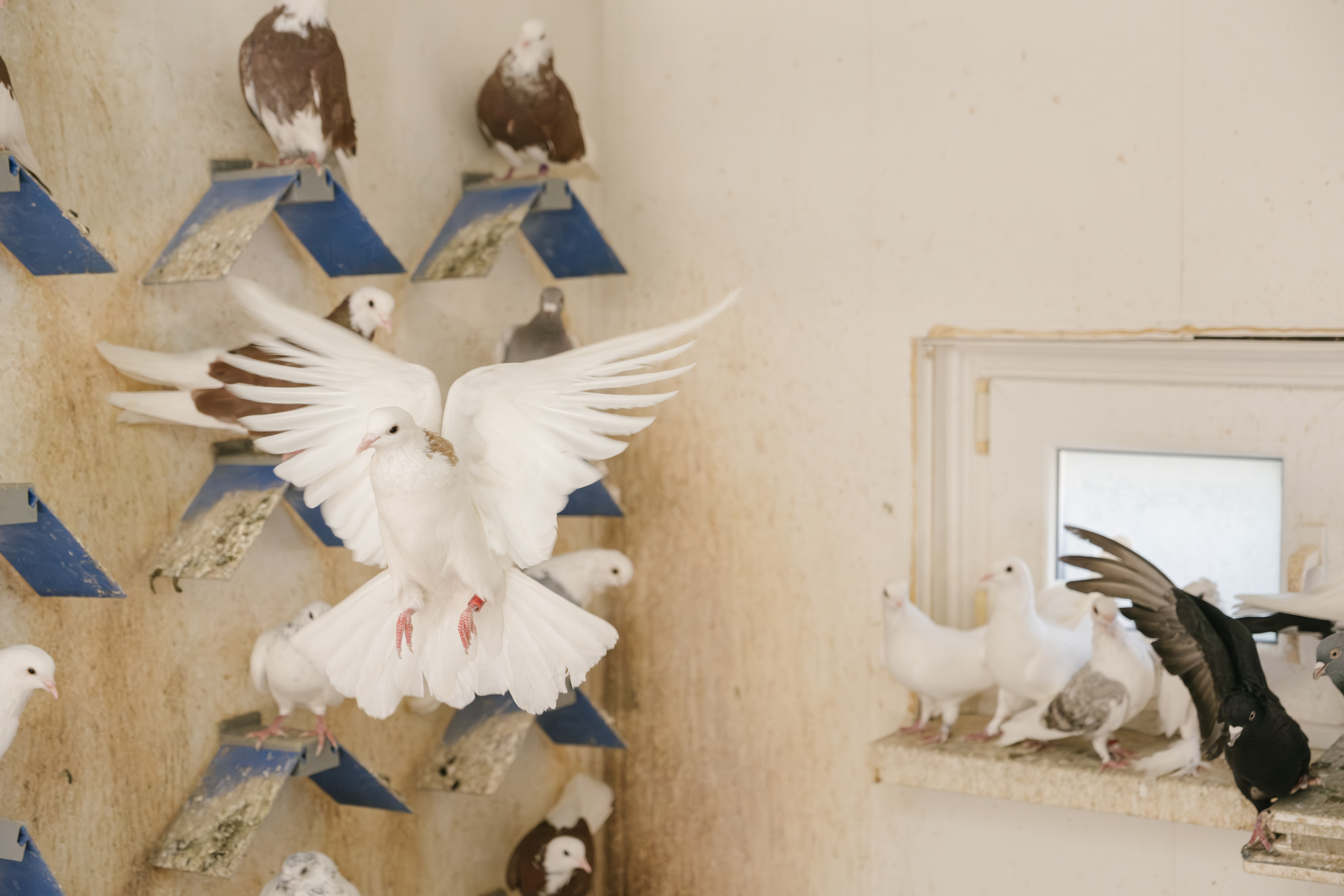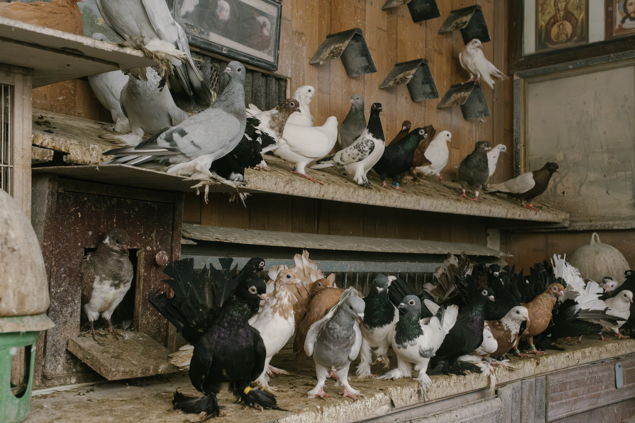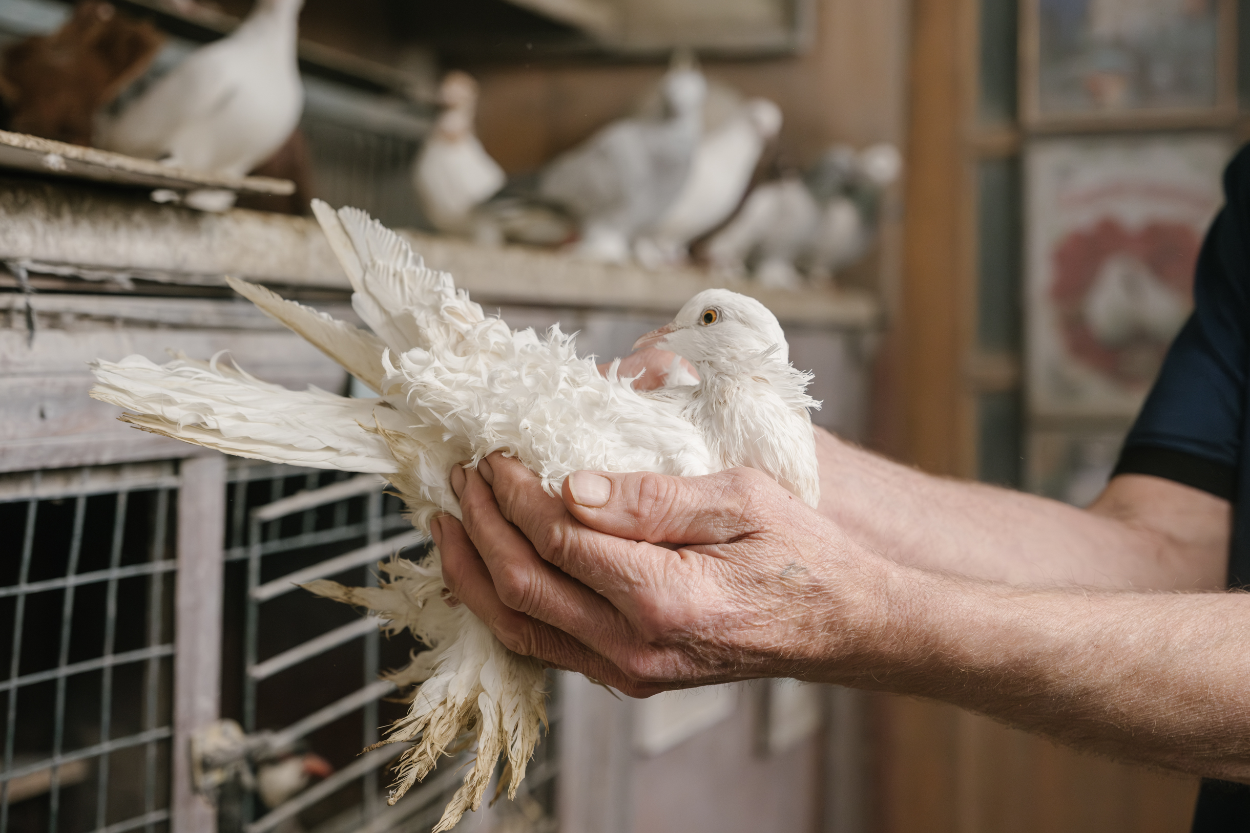 Как и Анатолий Александрович, Виктор проводит со своими птицами все свободное время: «День мой выглядит так. Я встаю, прихожу в голубятню. Мы с помощником пьем кофе, едим сыр. После этого обходим голубятню, обсуждаем, что нужно сделать. Целый день я провожу здесь. Когда у птиц брачный период, записываю, кто и когда положил яйцо, где вывелись птенцы. Обрабатываю от пероедов, смотрю, как проходит линька».