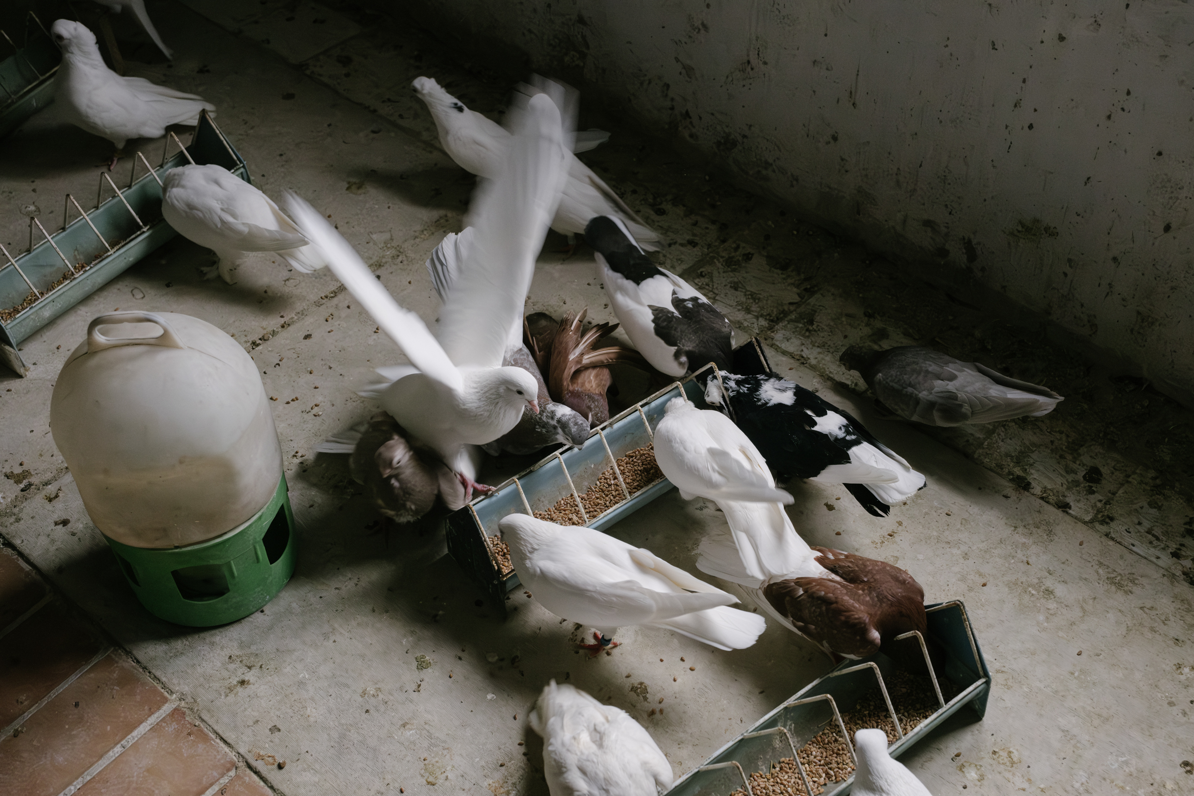 С голубями мужчина проводит все свободное время. Приходит утром, первым делом убирает помещение, насыпает корм. А потом занимается самыми разными делами — очищает гнезда, кормит птенцов.