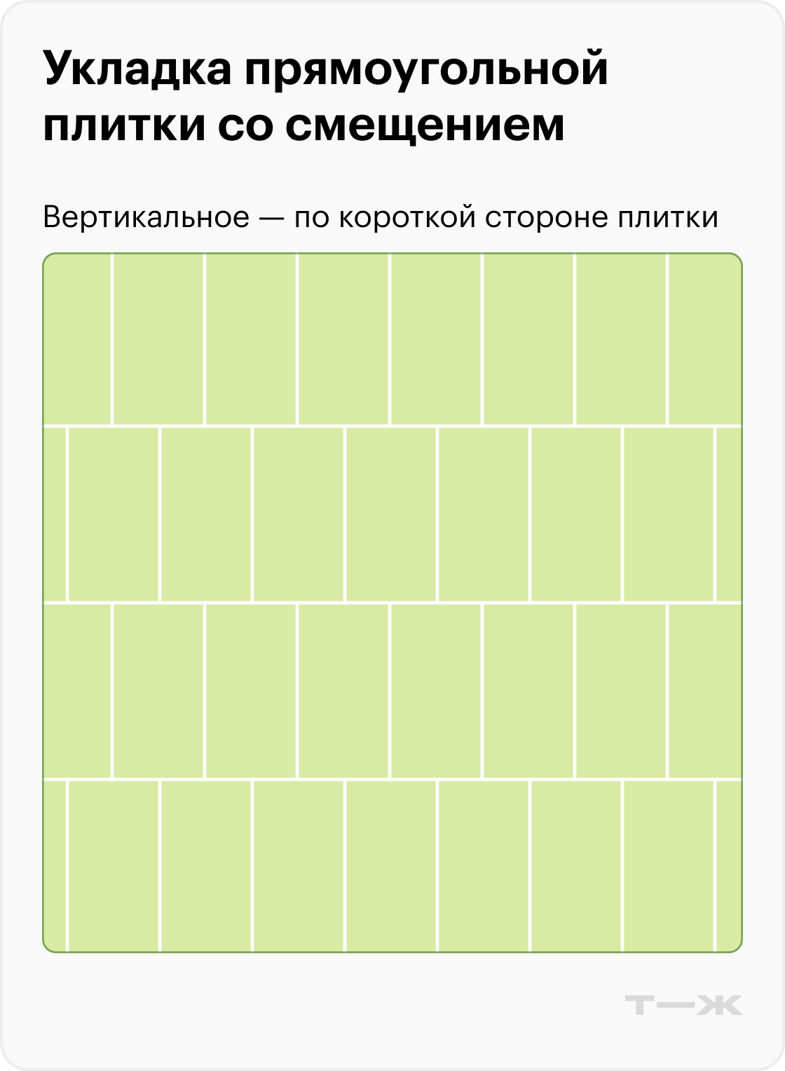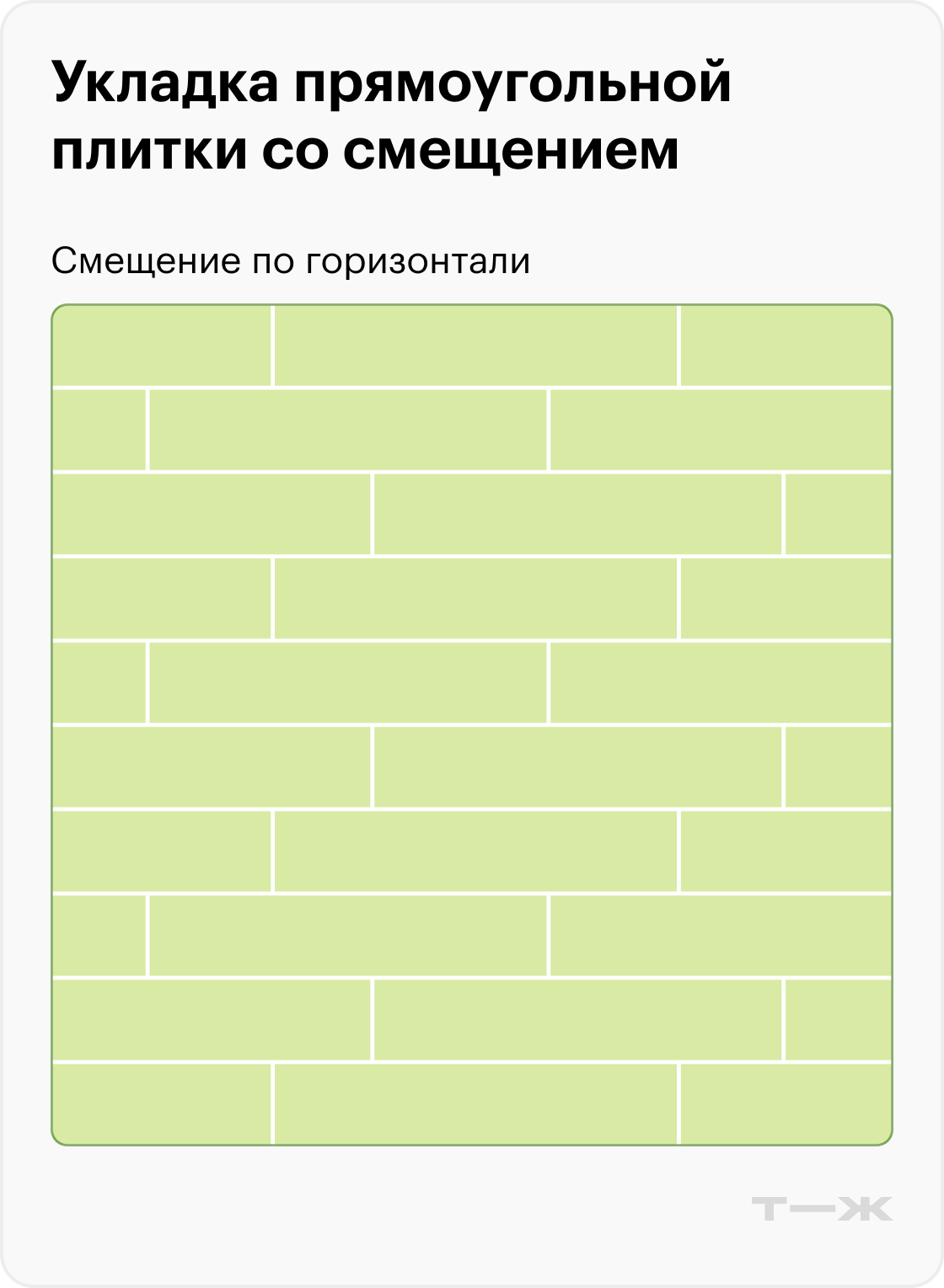 Раскладка со смещением выглядит интереснее простой, но за счет сдвигов увеличивается количество подрезов и сложнее выдерживать идеально ровные стыки.