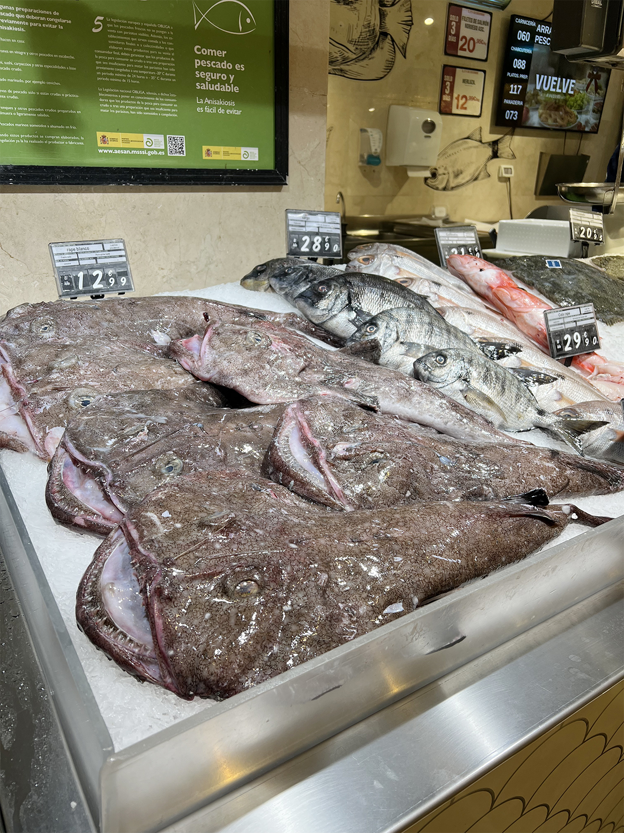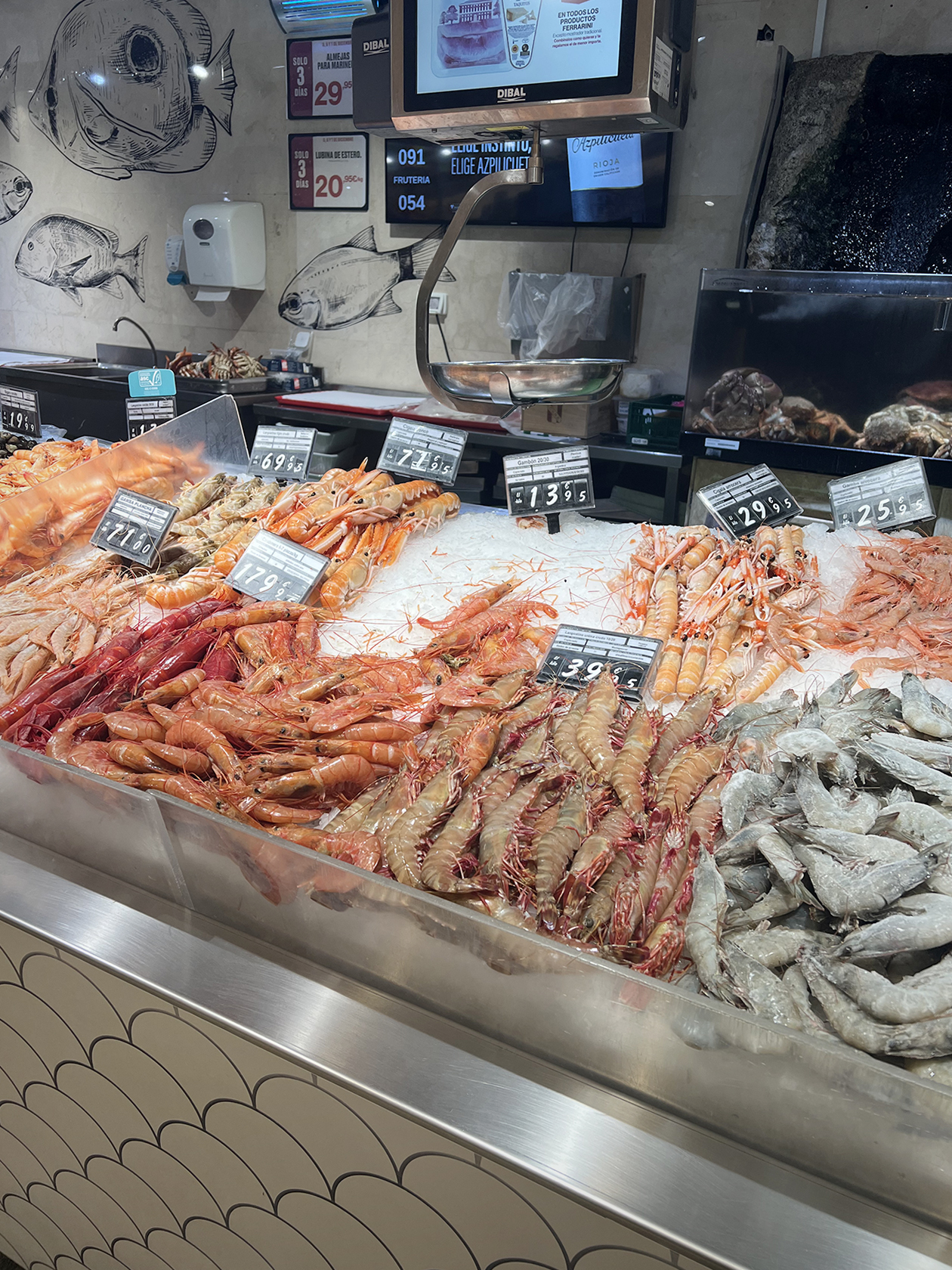 Я часто покупаю креветки — всегда их любила, а в Испании хороший выбор и свежих, и замороженных. Стейки из лосося тоже прочно вошли в наш рацион: купили днем — вечером уже вкусный ужин. Рыбу и морепродукты стараюсь готовить в тот же день, но главное — успеть купить: свежие продукты разбирают очень быстро, их любят все. Иногда беру осьминога: он здесь недорогой, можно купить уже готового.
