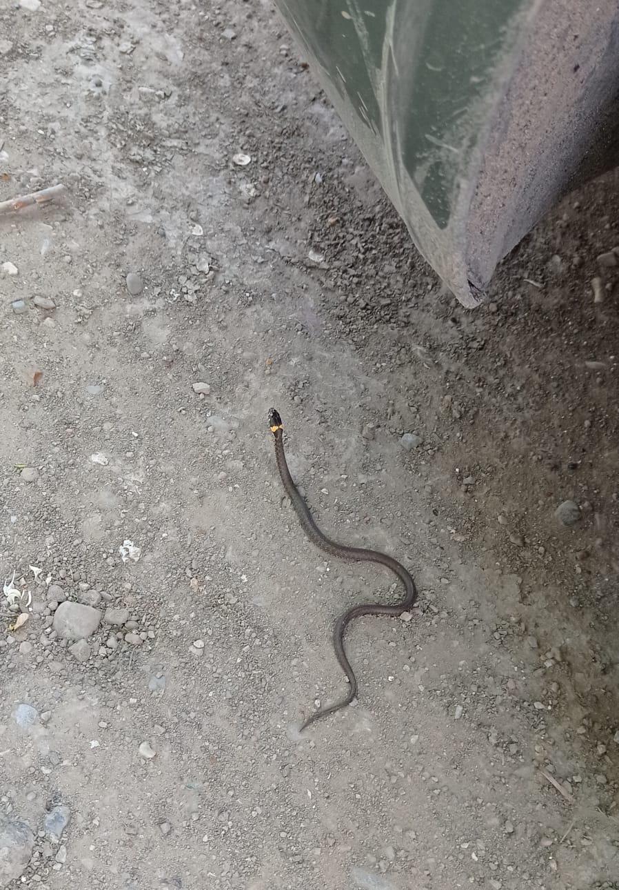 Однажды шли со школы, возле детского сада увидели ужа — откуда он приполз?