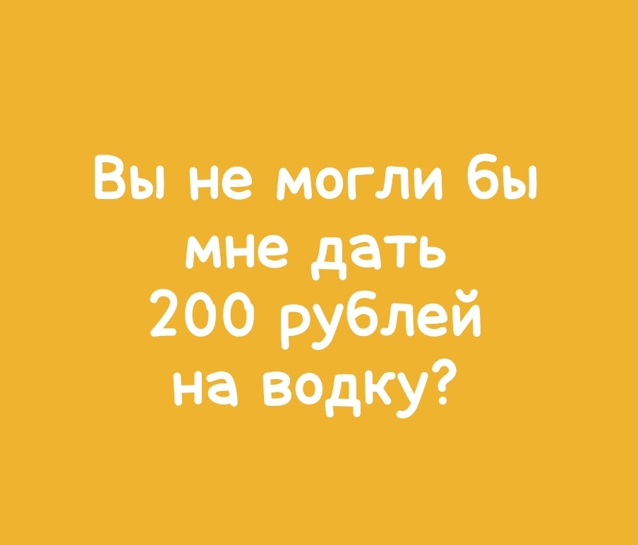 Подходит, произносит вежливо и уверенно: "Вы не могли бы мне дать 200 рублей на водку?"