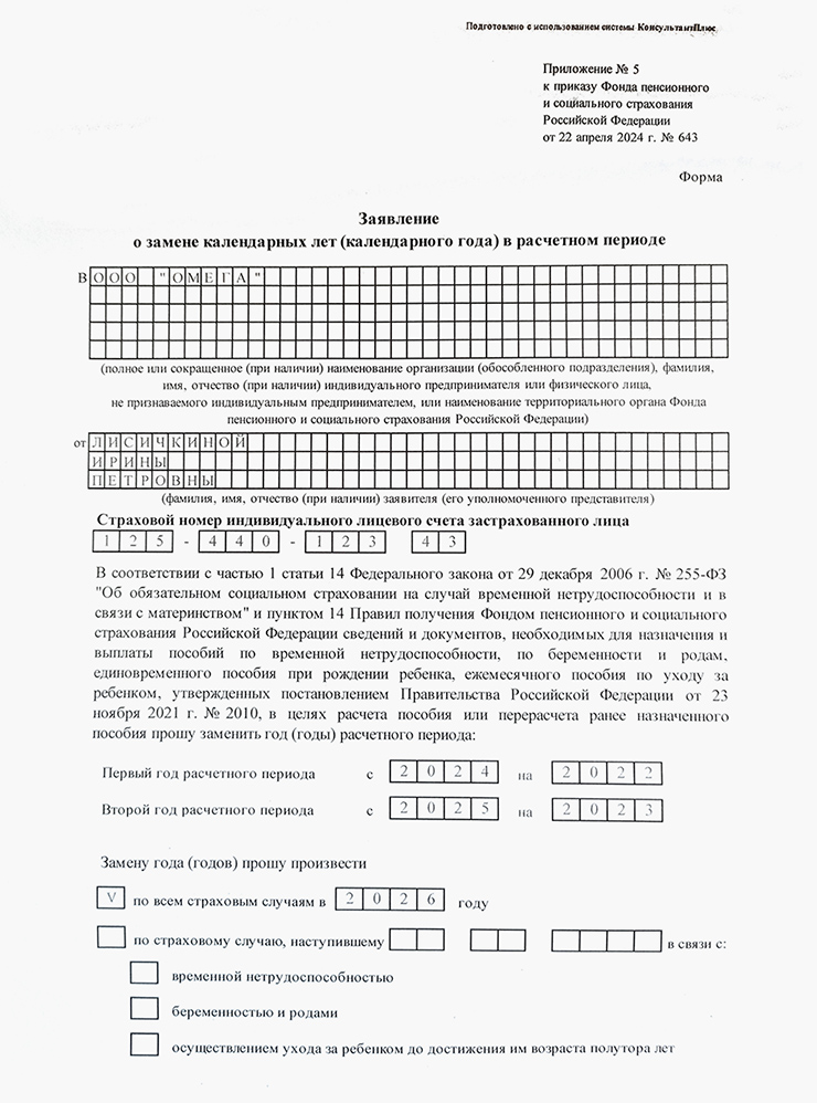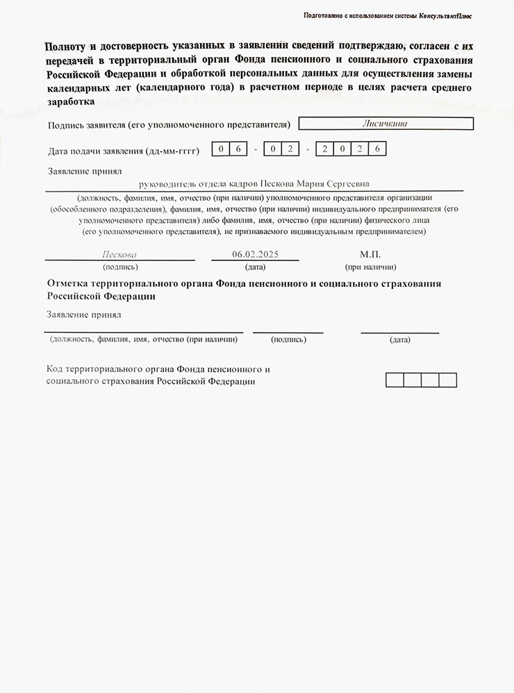 Если вы сидели с ребенком в отпуске и не работали, закон разрешает учитывать заработок, который вы получали до этого. Если в годы, непосредственно предшествующие году выхода в отпуск по беременности и родам или по уходу за ребенком, вы получали хороший оклад, обратитесь в бухгалтерию. Там вам дадут заполнить заявление о замене календарных лет в расчетном периоде. Потом работодатель направит эти сведения в СФР.