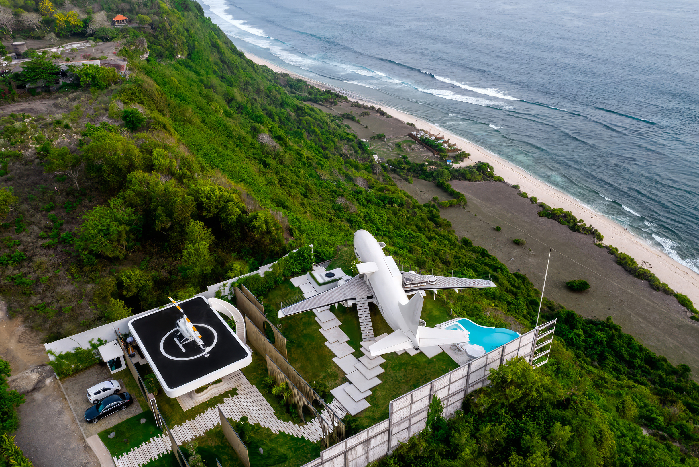 После того как я купил самолет и закрыл эту ужасную сделку, встал вопрос о земле. Изначально я планировал разместить его в Убуде , в центре острова. Я нашел отличную землю с видом на джунгли, каньон и водопад. Место красивое до слез. Хотел поставить самолет на зеркальные балки, чтобы был эффект, будто он завис в воздухе на пятнадцатиметровой высоте на подлете к водопаду. Но геологические исследования показали, что почва не выдержит такую массивную конструкцию. Пришлось искать другую землю.