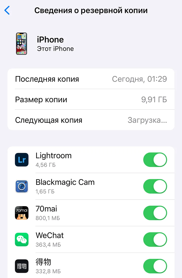Создание резервной копии с помощью iCloud — самый простой способ сохранять актуальные данные. iCloud автоматически делает копию устройства каждый день, когда оно подключено к вайфаю и источнику питания.