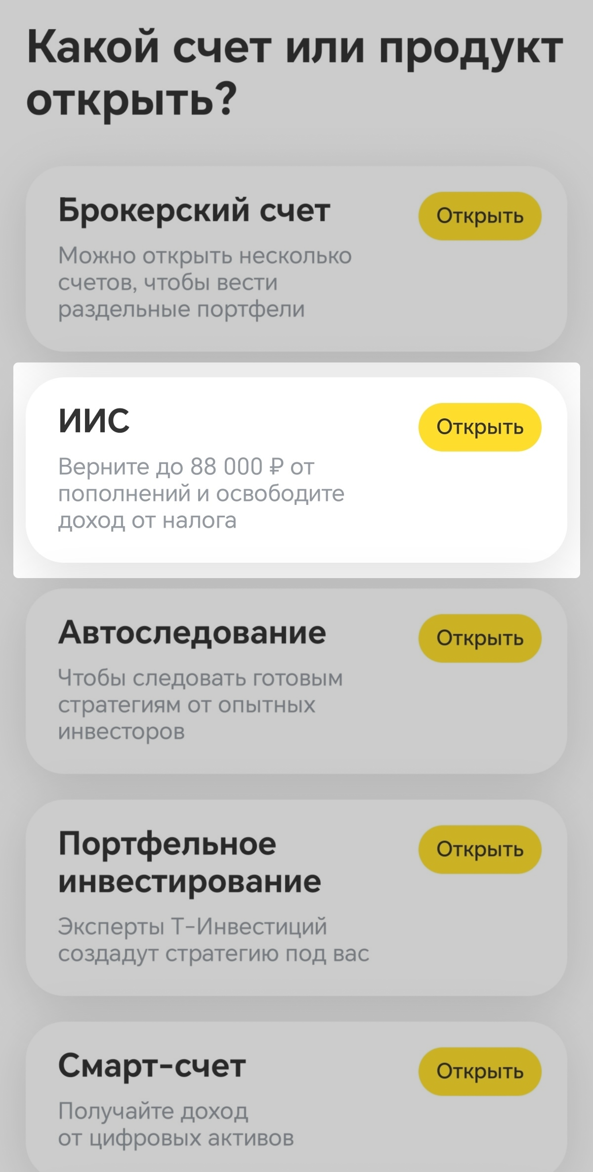 Вот как открыть ИИС-3 в мобильном приложении Т-Инвестиций.