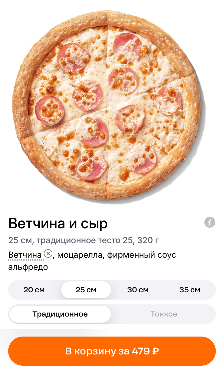 Итог: 0,98 ₽ за 1 см² маленькой пиццы и 0,87 ₽ — за 1 см² большой. Снова большая пицца выгоднее!