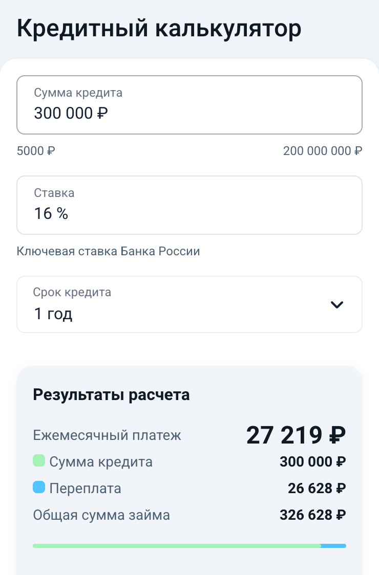 Для сравнения: при дифференцированных платежах переплата была 4 200 ₽. Разница кажется маленькой — всего 240 ₽. Но если бы сумма кредита или срок были больше, эта разница стала бы заметнее. Именно поэтому важно выбирать кредит с подходящим видом платежей.
