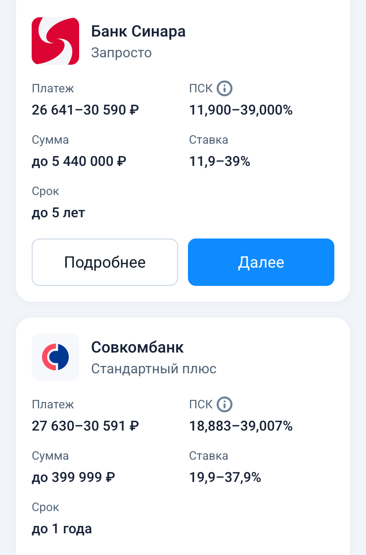 Даже проценты по кредиту могут сильно меняться в зависимости от разных условий. Посмотрите пример.