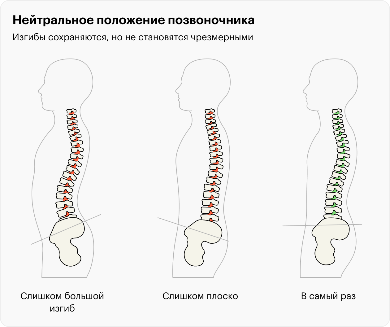 1️⃣ Примите нейтральное положение позвоночника — то, в котором он сохраняет свои естественные изгибы. Это наиболее безопасное положение для суставов позвоночника и межпозвонковых дисков. Проще всего принять эту позу в положении стоя.