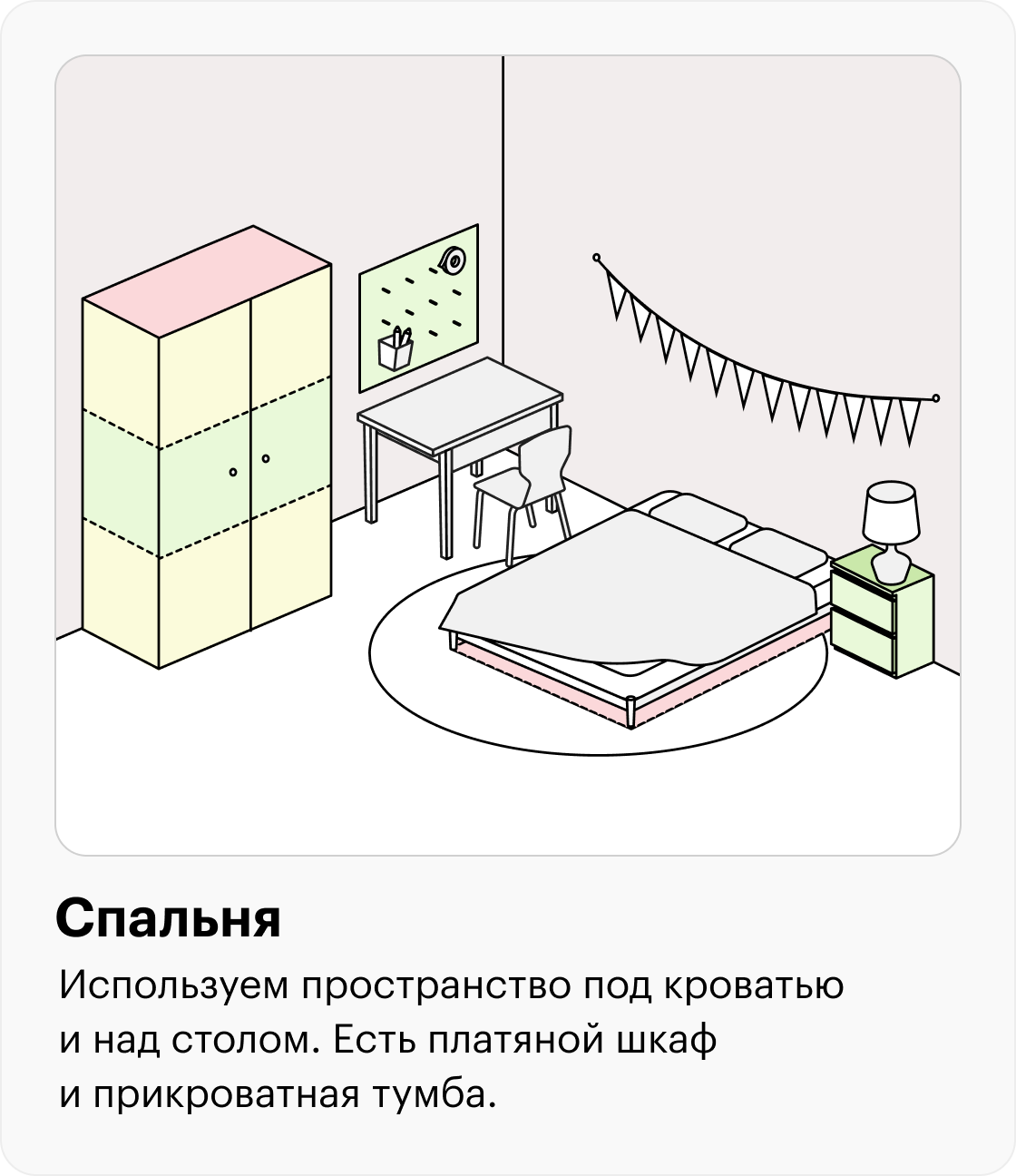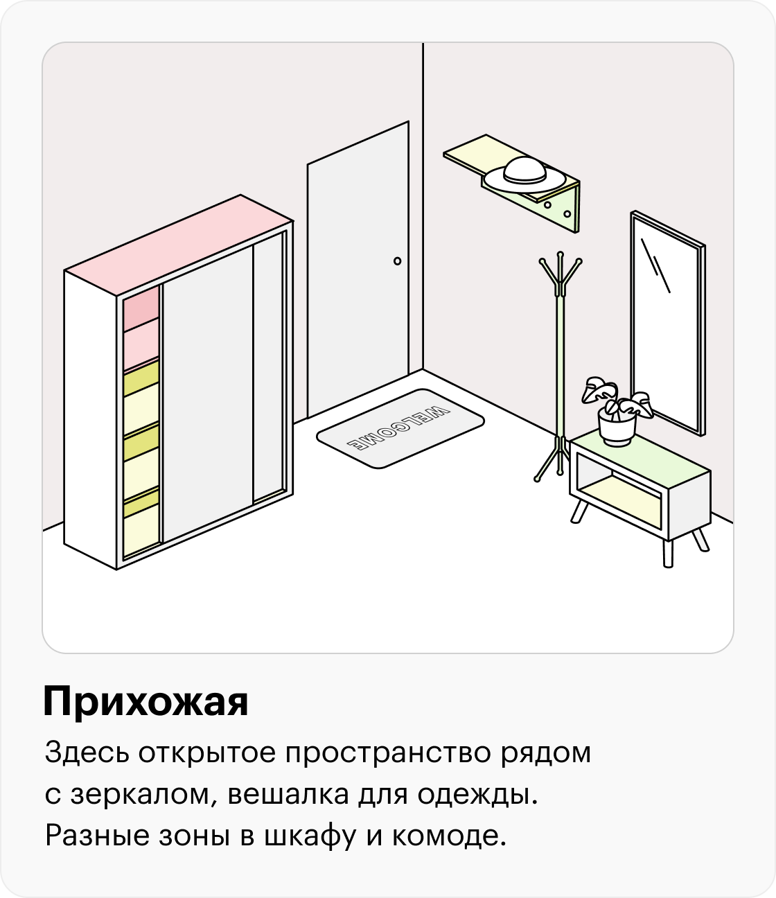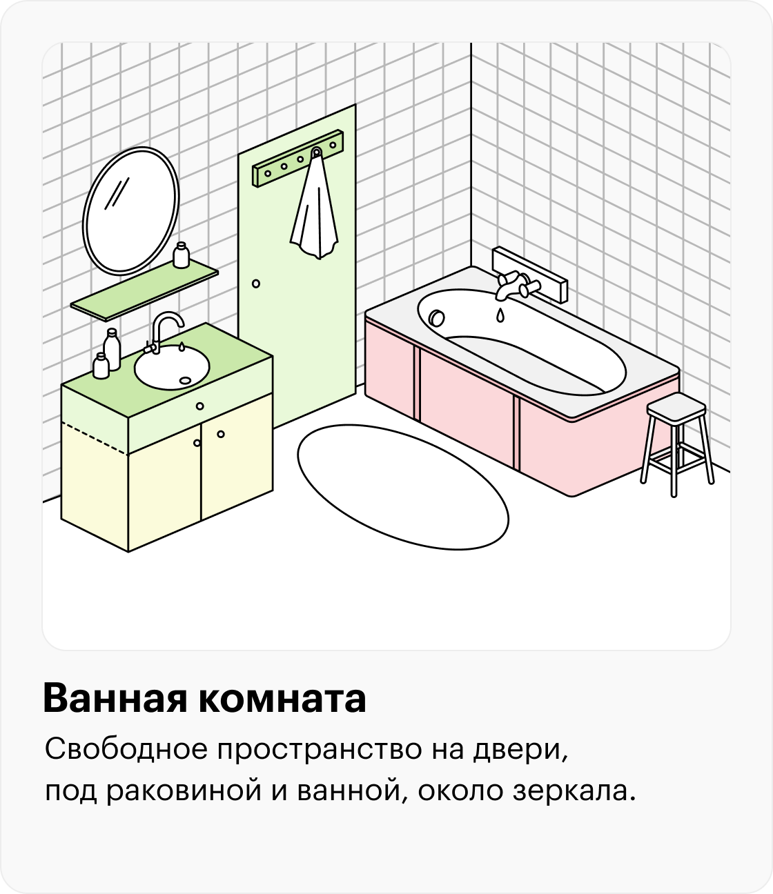 🟢 Зеленая зона — от подбородка до кончиков опущенных рук. Здесь удобно хранить то, чем вы пользуетесь каждый день.