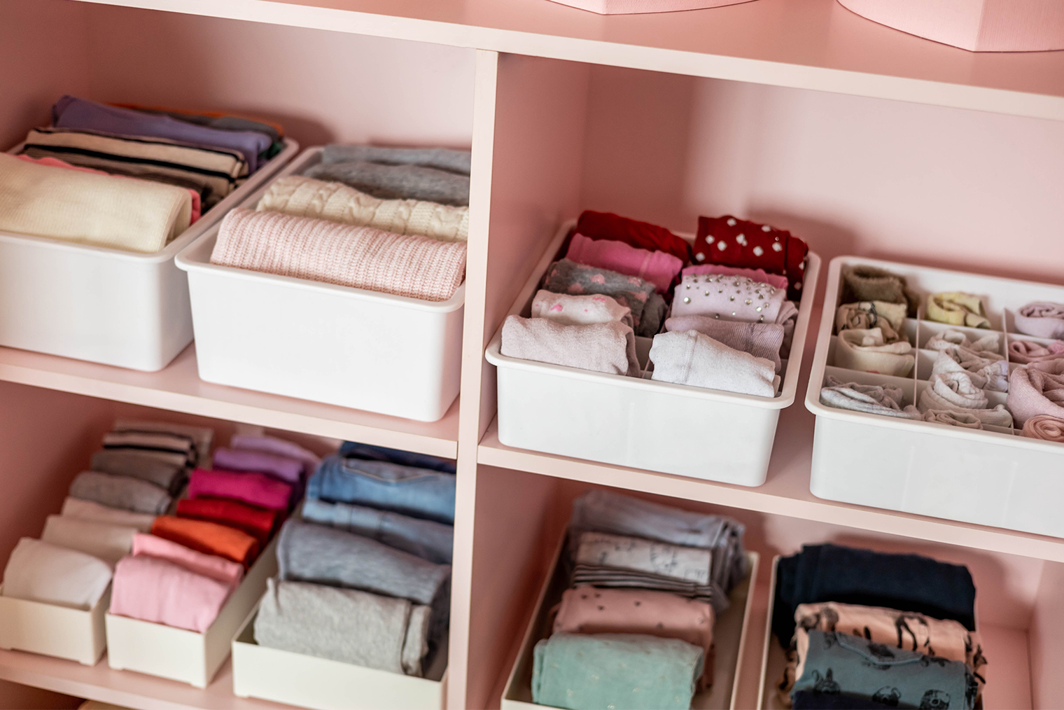 В чем хранить. Лучше всего — в пластиковых контейнерах с крышками. Они защищают от пыли, легко ставятся друг на друга и недорого стоят. Либо можно просто сложить вещи на полках и в ящиках с закрытым хранением.