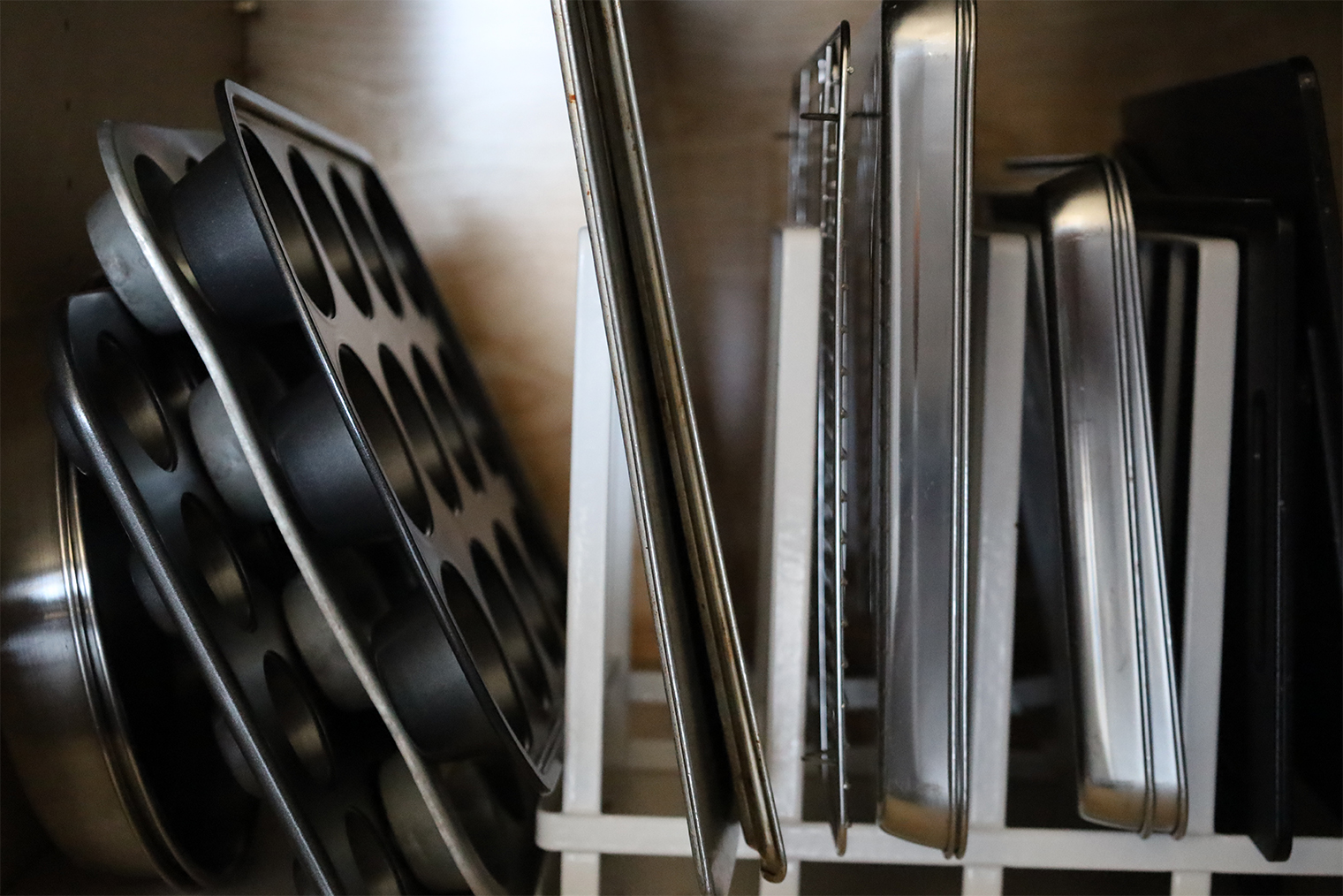 - специальные разделители для сковородок и крышек помогут поддерживать порядок в ящиках;