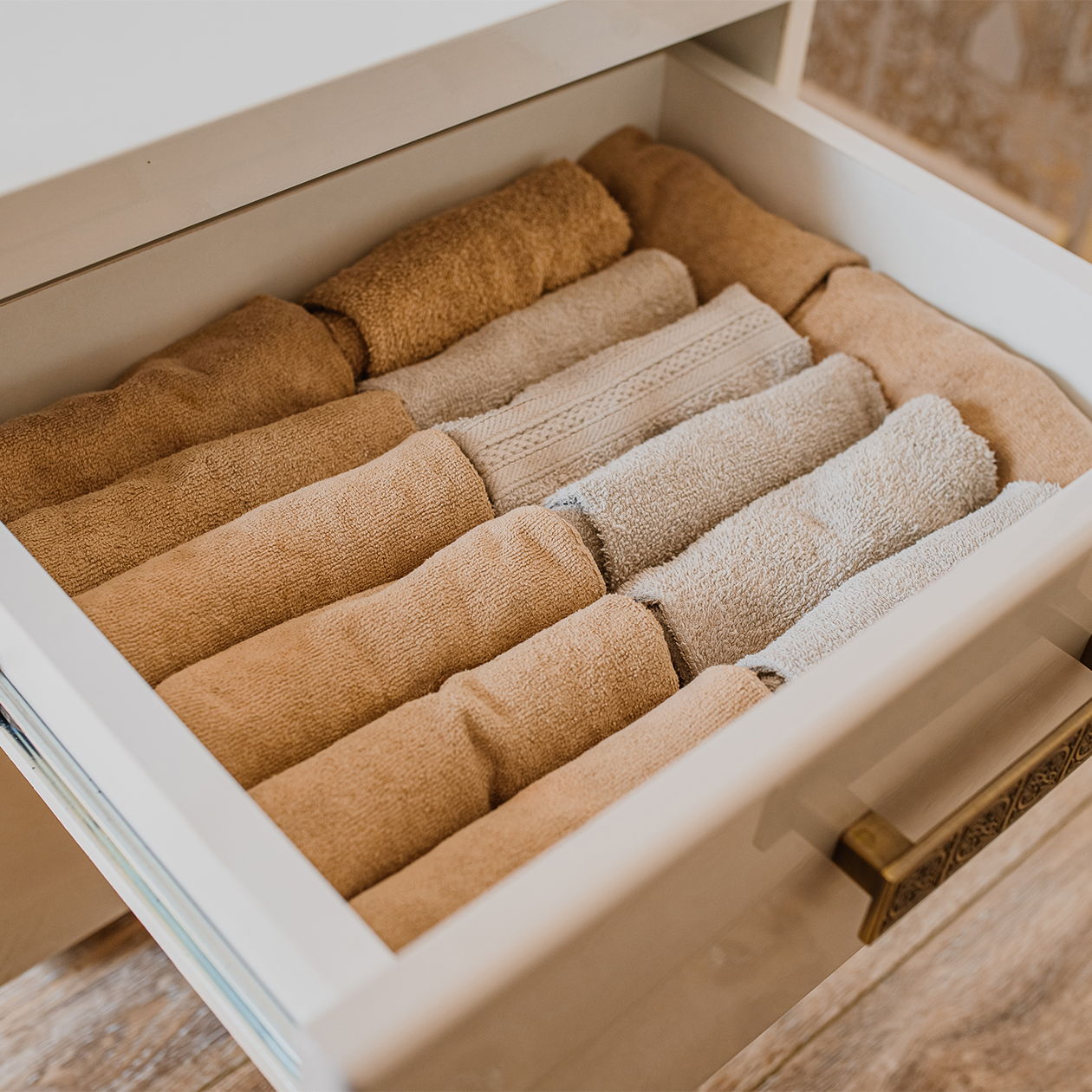 Начнем с текстиля — к нему относятся одежда, постельное белье, полотенца, шторы, скатерти. Разберемся, что в какой зоне лучше хранить и как складывать.