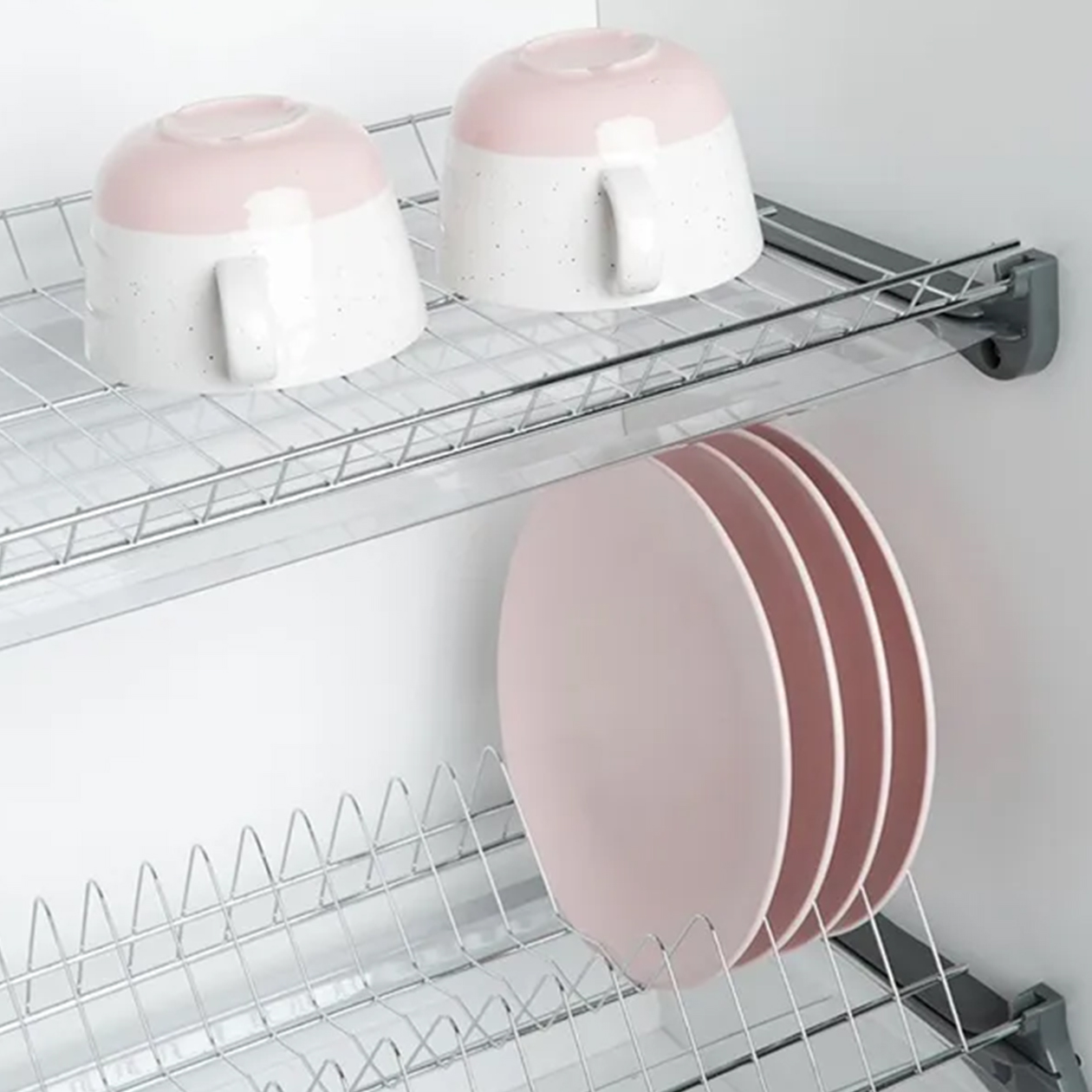 | 🟡 Желтая | Кастрюли, в которых готовите редко, сито, скалку, формы для выпечки, блендер, миксер, запасы продуктов, которые не используете ежедневно | Вертикально в шкафах | Стойки для вертикального хранения, корзины, выкатные полки |
