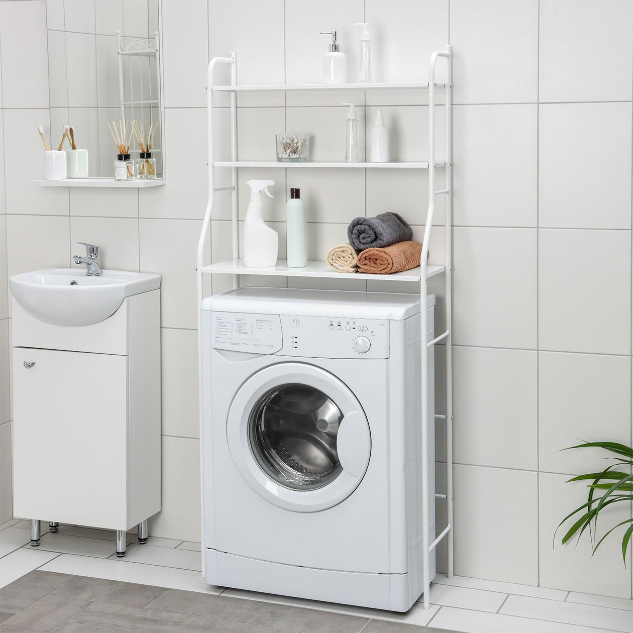 Стеллаж или несколько полок над унитазом или стиральной машинкой поможет задействовать вертикальное пространство. Металлические полки лучше выбирать из нержавеющей стали, они долговечны и легко моются.