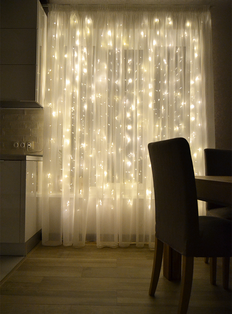Отдельный тип уютного освещения — гирлянды. У многих они ассоциируются с праздником и приятными эмоциями. Можно выбрать любую: с теплыми или цветными лампочками, однотонную или мигающую — главное, чтобы нравилась вам.