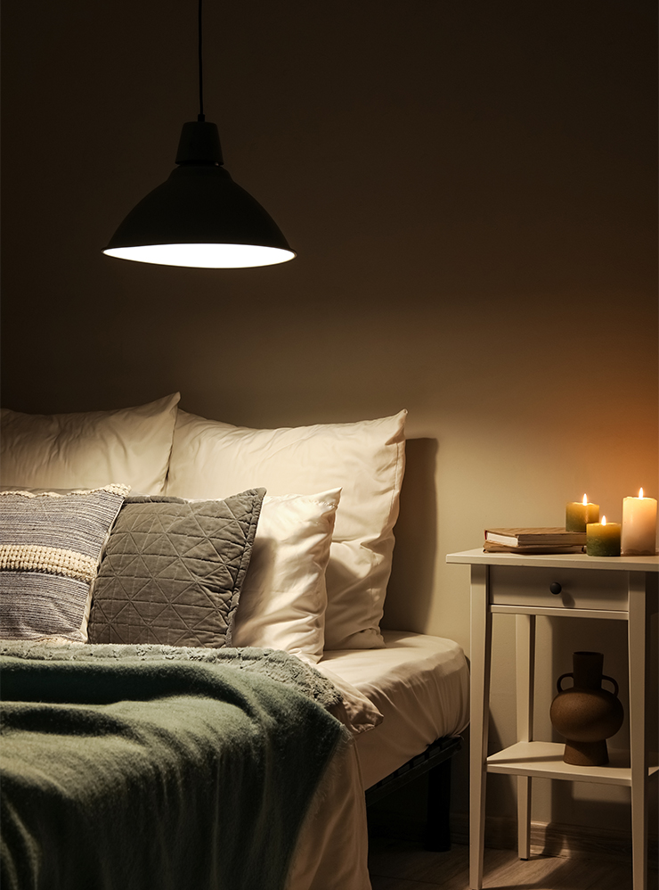 | Теплое освещение | Использовать лампы с теплым светом, добавить огонь или его имитацию в свечах и камине, повесить гирлянды, создать несколько источников света на уровне глаз |