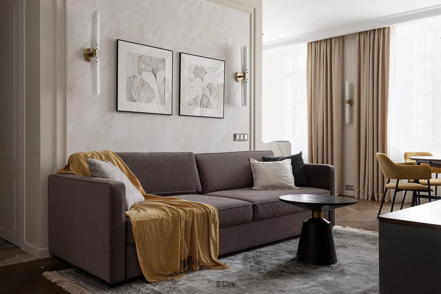 Мы воспринимаем обстановку целиком — и если один предмет сильно выделяется по цвету или масштабу, он нарушает баланс. Например, слишком темный или крупный диван на фоне светлой комнаты притягивает к себе все внимание и нарушает баланс композиции.