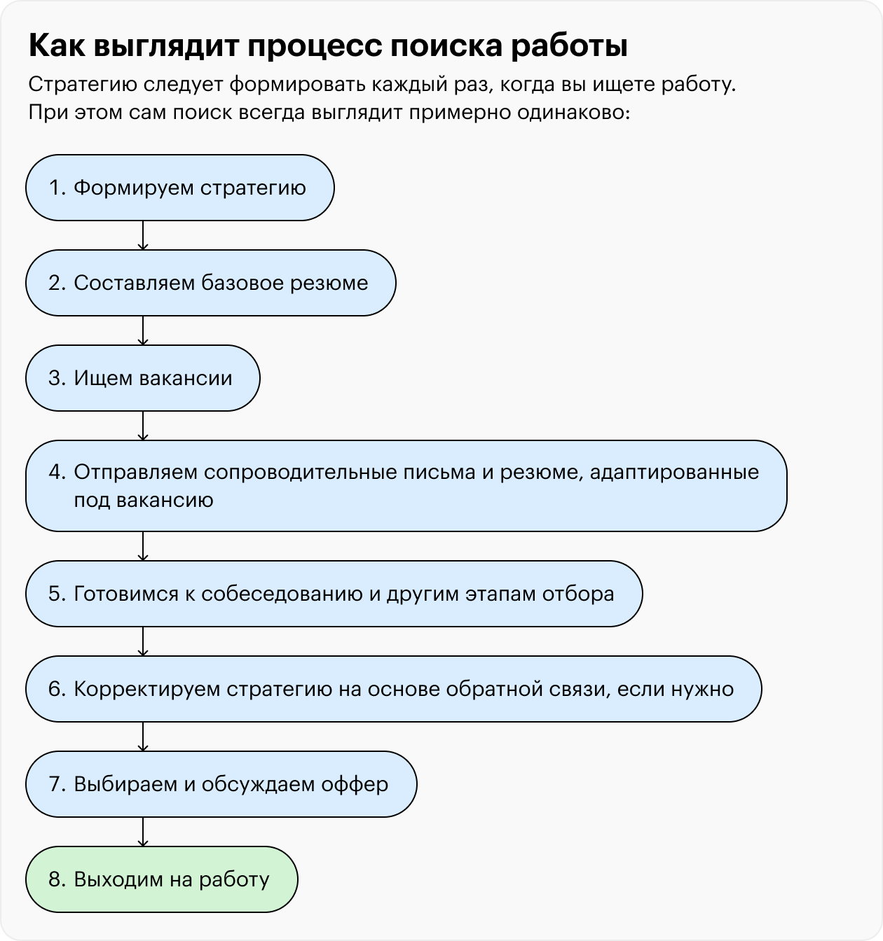 Может показаться, что искать работу очень сложно: множество этапов, везде свои правила — все нужно помнить и не перепутать. Не пугайтесь, это только на первый взгляд.