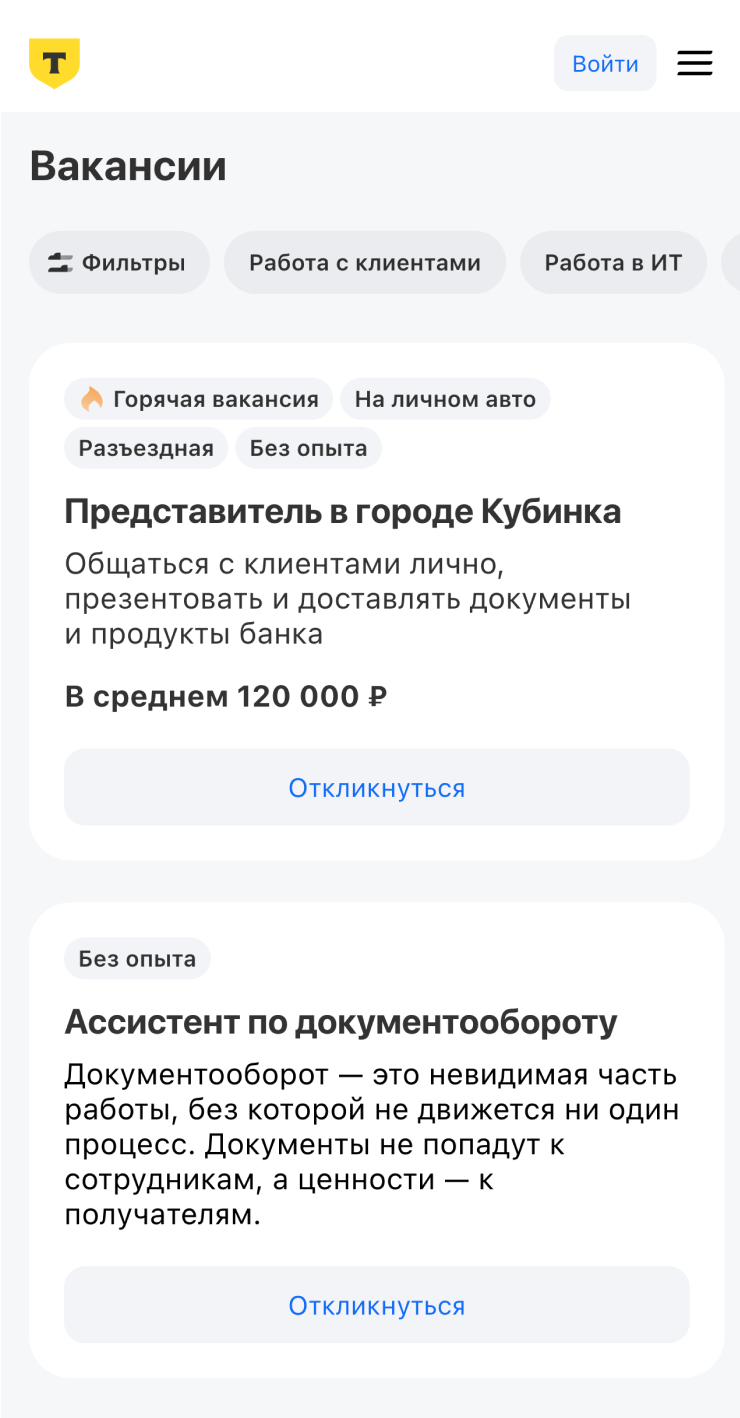 Вакансии на сайте и карьерной странице компании