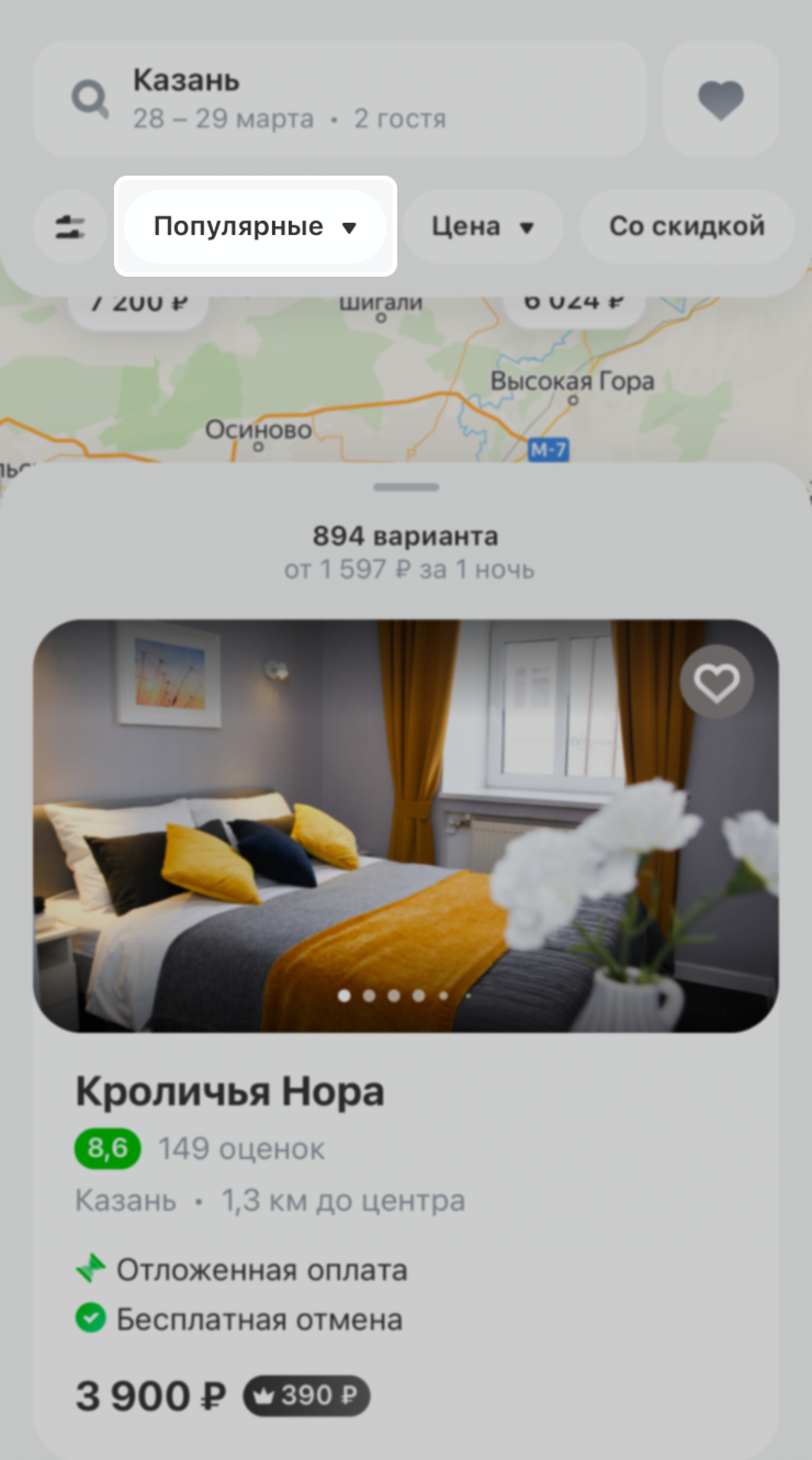 Если вы готовы рассматривать все форматы жилья, вбейте в поиске направление и даты поездки и отсортируйте предложения по параметру, который кажется важнее.