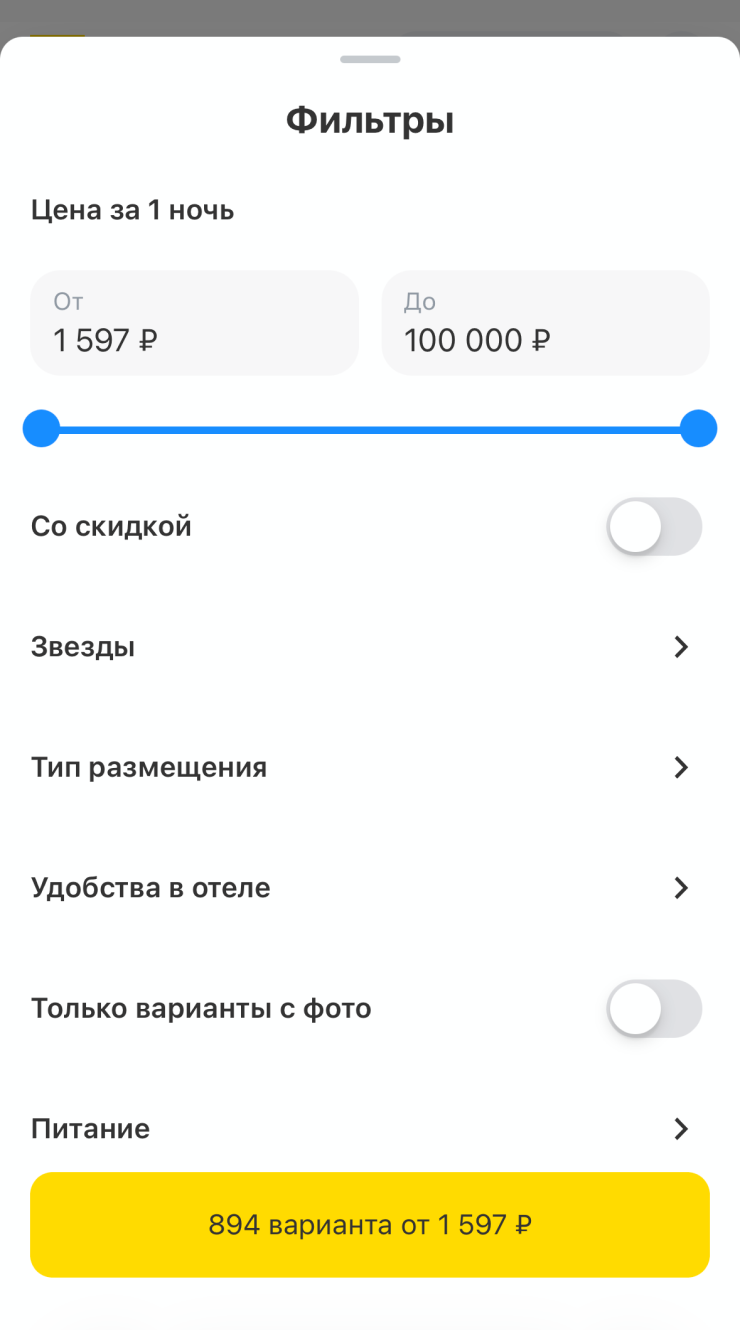 Если вы готовы жить только в отеле и не хотите видеть в выдаче квартиры и хостелы — этот параметр можно задать в фильтрах. Еще там можно выбрать звездность отелей и дополнительные услуги: завтрак или полноценное питание, спа-зона и так далее.