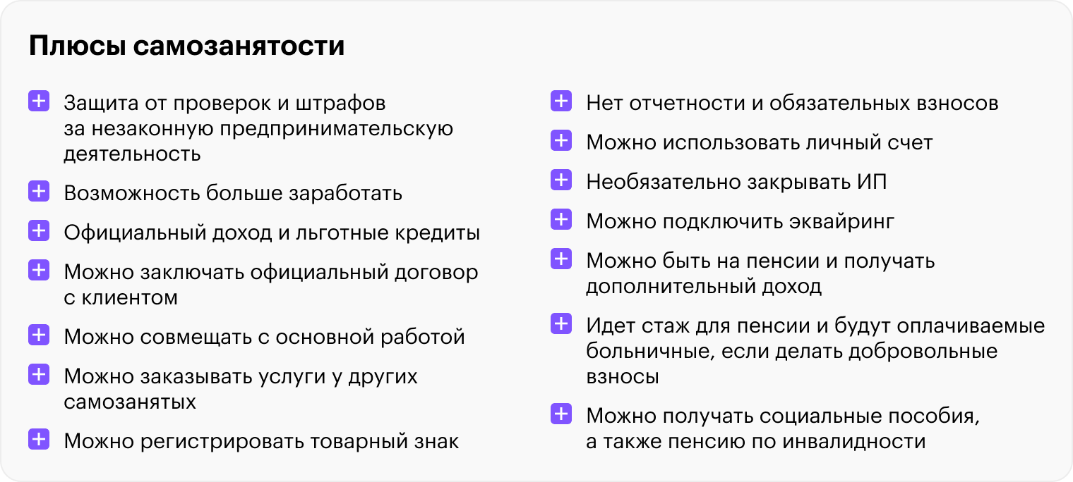 Помимо удобства использования, самозанятость дает много других преимуществ, которые делают этот режим особенно привлекательным для фрилансеров и микропредпринимателей.