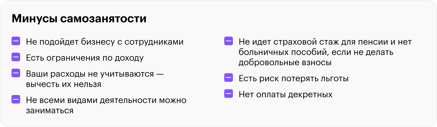 Несмотря на очевидные преимущества, у самозанятости есть и ограничения.