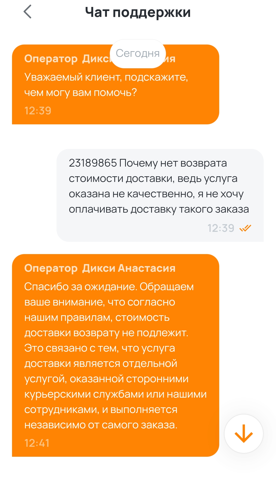 Каждый раз задавала вопрос о возврате в чате поддержки, получала однотипный ответ, что услуга доставки это отдельная услуга, оказанная сторонней организацией.