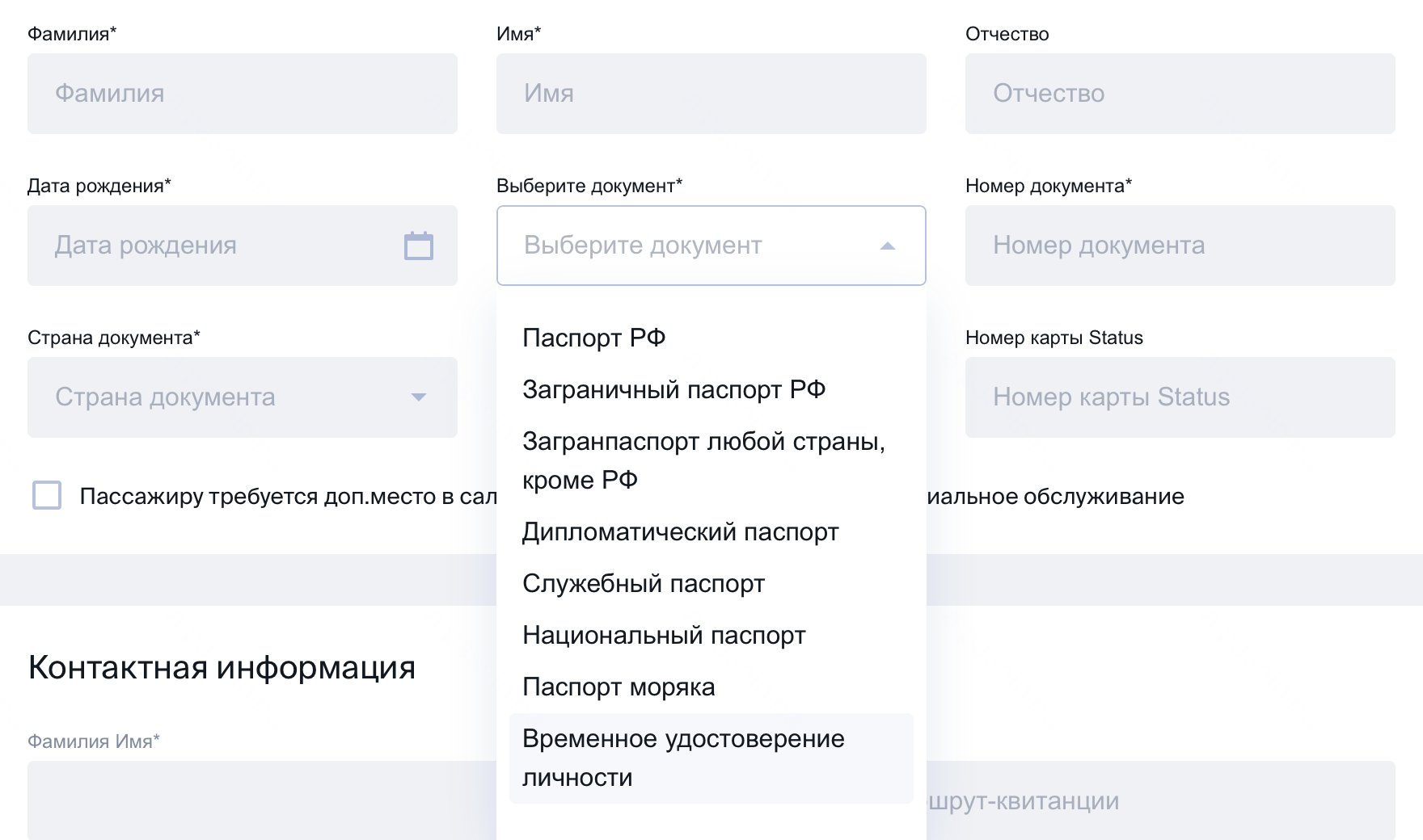 Если человек купил билет по одному документу, а на регистрации будет предъявлять другой, ему тоже придется изменить бронирование. Такая ситуация может возникнуть, например, когда пассажир купил билет на российский паспорт, а летит по заграничному.