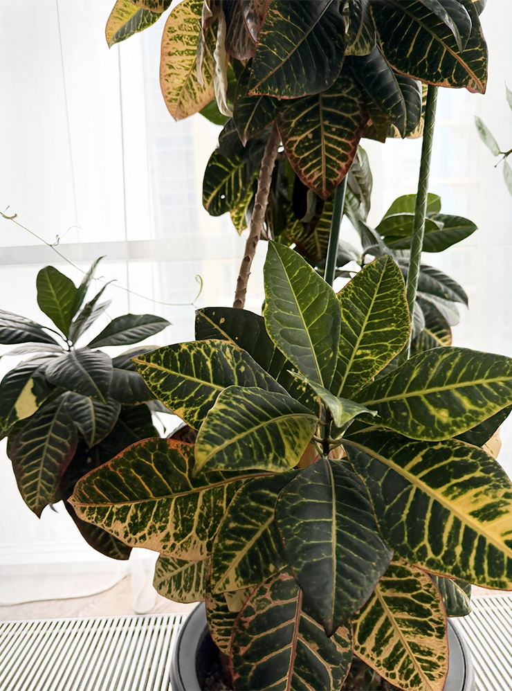 У меня дома живет кротон, которому уже больше 20 лет. У кротона есть особенности: зимой он может сильно листопадить, ствол остается голым, листья на нем не нарастают. Плюс он сильно подвержен нападению паутинного клеща, который предпочитает сухой воздух.