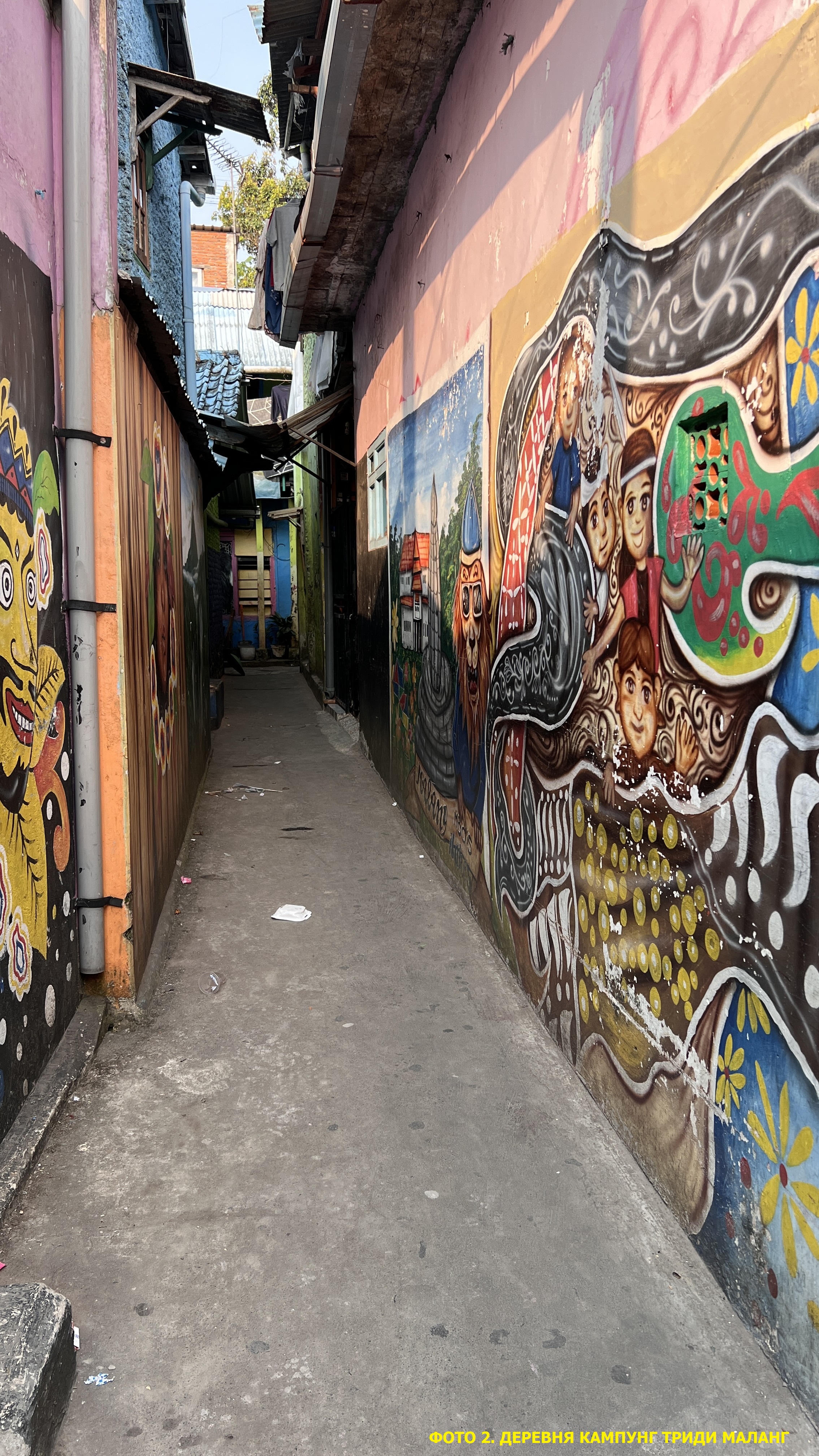 Первый день мы посвятили Малангу — колониальному городу с голландской архитектурой и совершенно безумным трафиком. Целью был Kampung Tridi — радужная деревня, которая десять лет назад была обычными трущобами на берегу мутной реки Брантас.