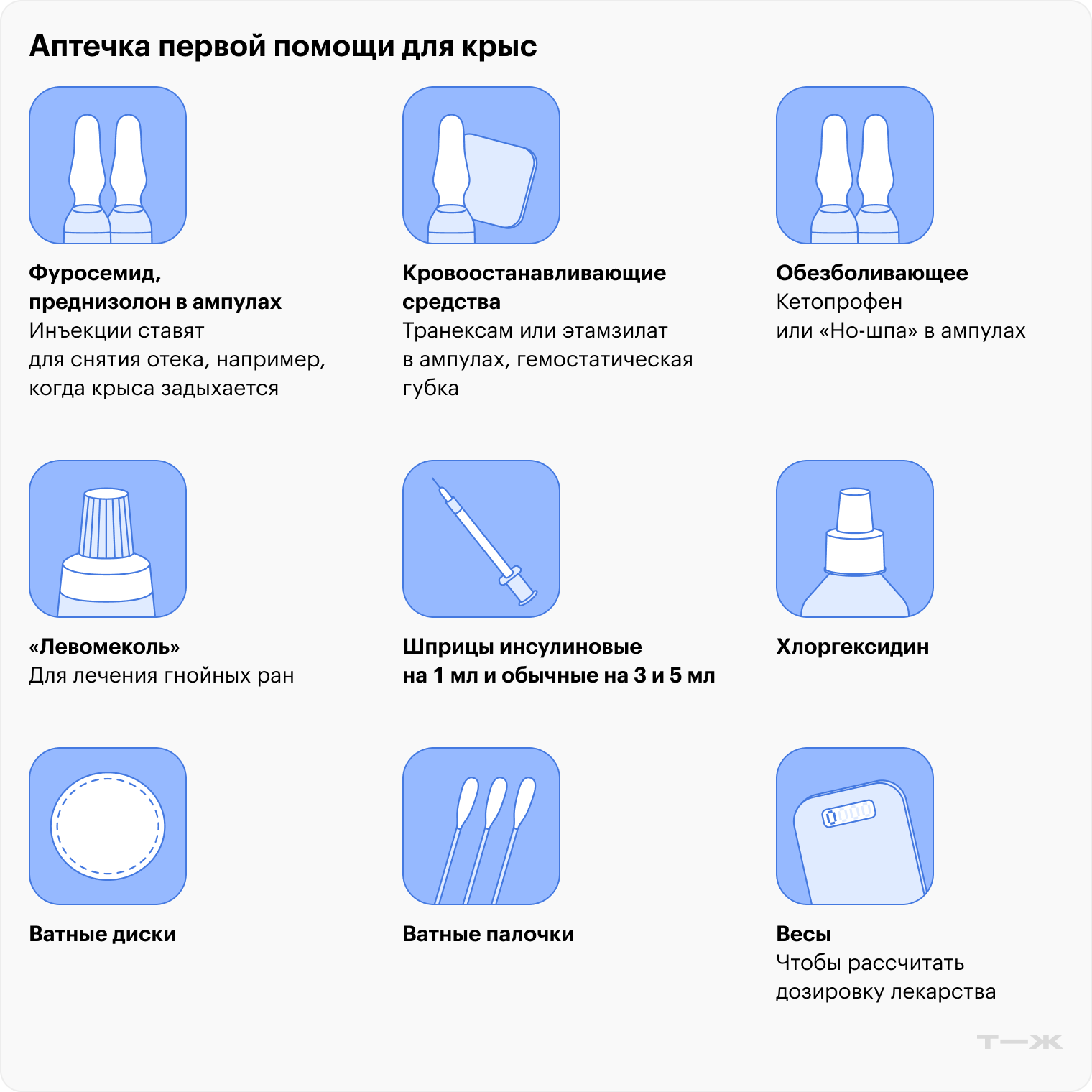 - Дома должна быть крысиная аптечка с препаратами, которые могут экстренно понадобиться.