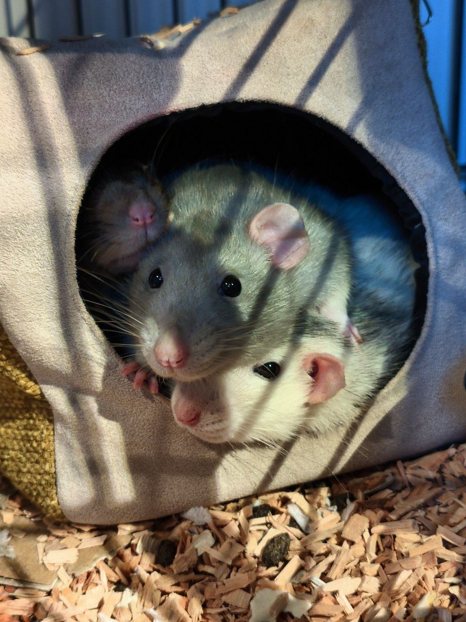 Фото питомцев: крысы Тельма, Луиза и Семечка отдыхают в мягком домике