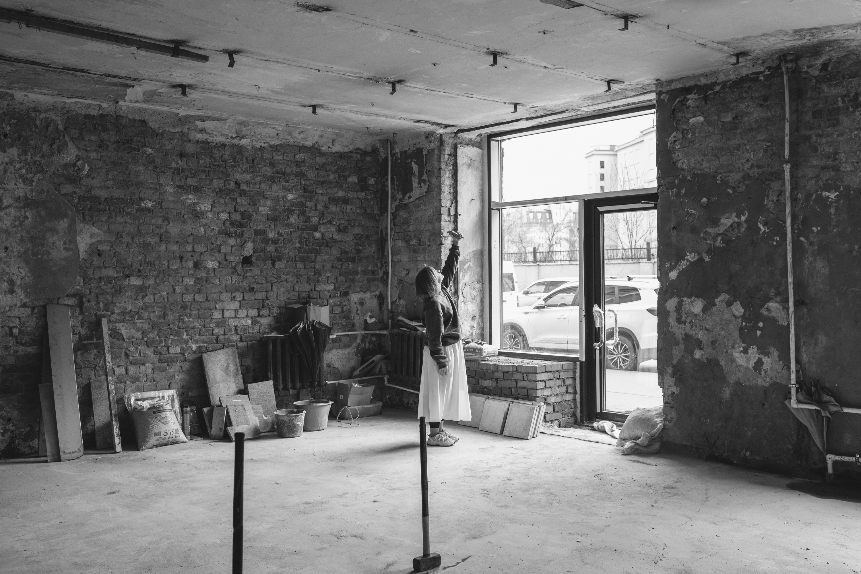 Возле окон и под подоконниками мы взялись за кирпичную кладку. Сделали ниши под новые радиаторы, армировали зоны и подготовили стены к покраске: теперь они выровнены, оштукатурены, загрунтованы. Сумма работ и материалов — 80 тыс. рублей.