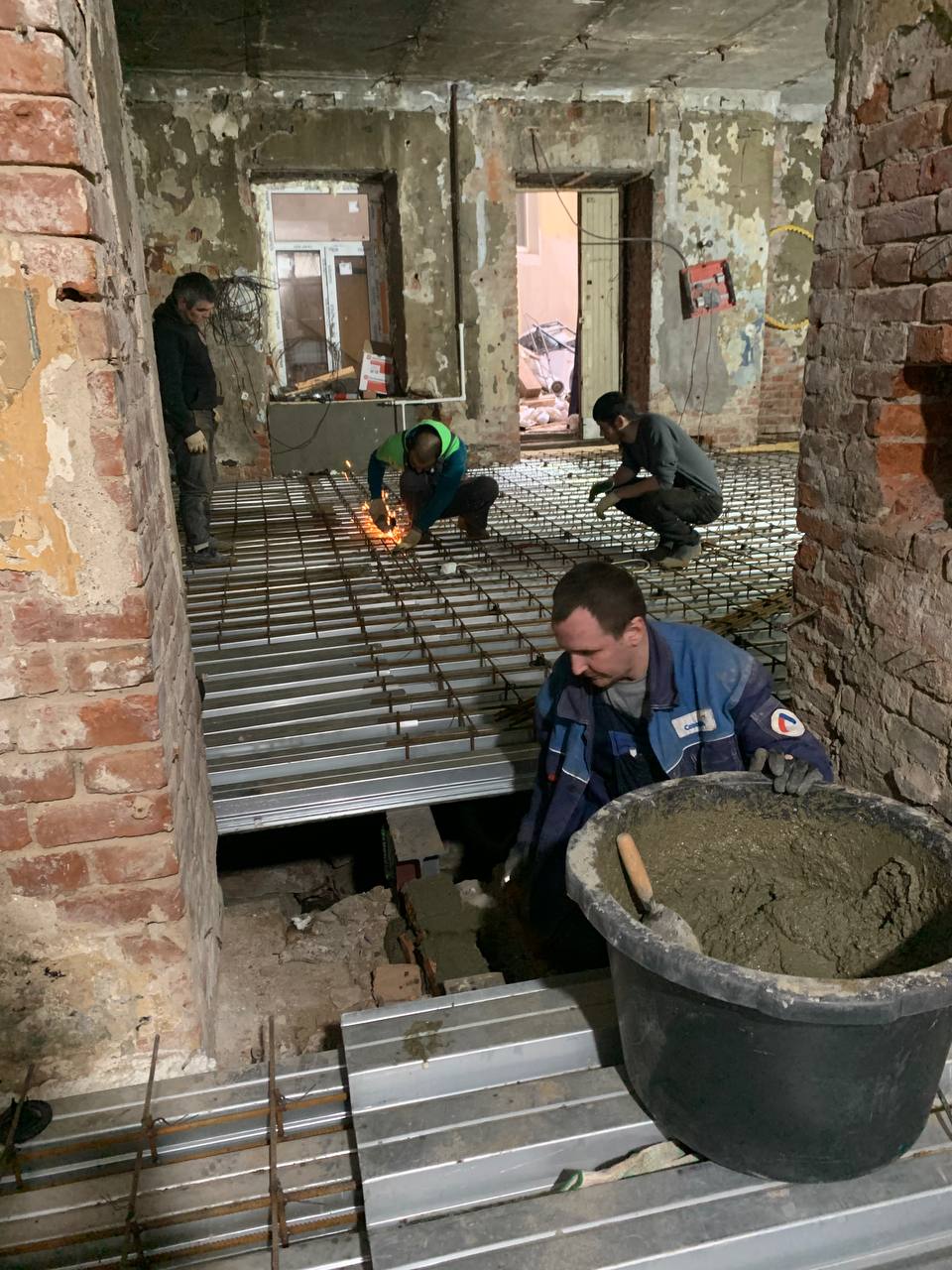 В этом же помещении восстановили пол на подготовленных участках. Аварийные зоны получили новые арматурные конструкции и заливку цементом. Стоимость — 60 тыс. рублей.
