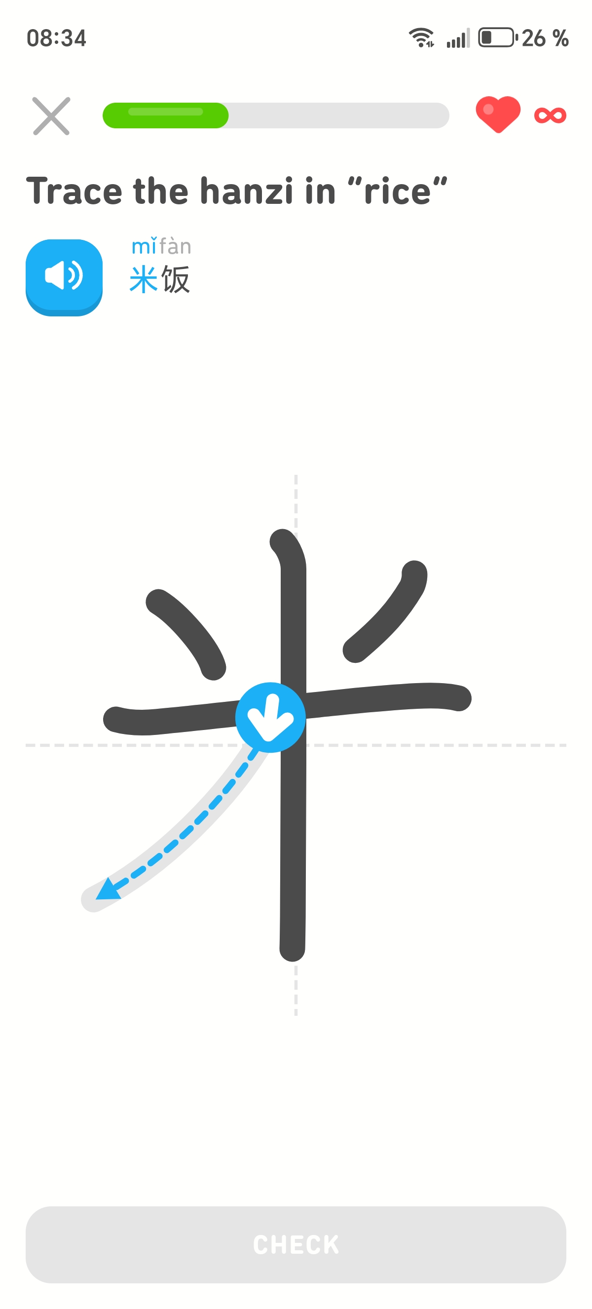 Больше всего в Duolingo мне нравится раздел Hanzi, где можно изучать иероглифы. Я ленюсь писать их от руки, а в приложении можно за пару минут повторить написание.