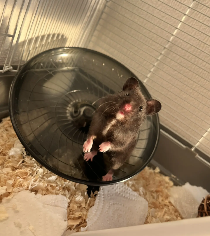 Так или иначе, в тот же день, я вымыла и продезинфицировала клетку, а на следующий мы с ревущей дочкой пошли в соседний зоомагазин и купили нового. Назвали ТЬМОЙ (или Тёмкой), он с нами уже больше месяца, но я не перестаю всякий раз, когда он спит в домике, присматриваться — дышит ли ((