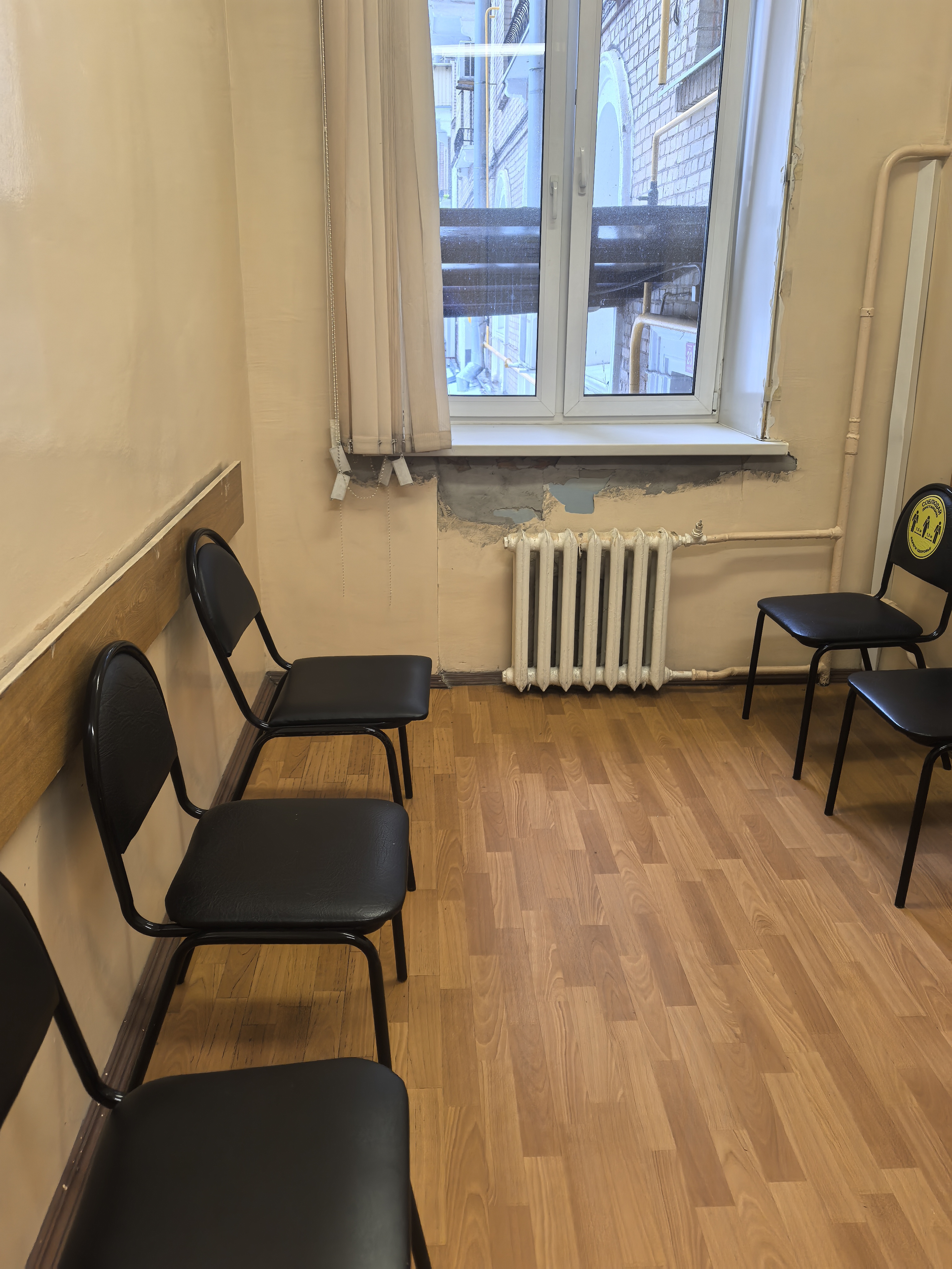 На фото печальное окно жк, где я сдавала почти все анализы. После моей жалобы, штукатурку поправили и покрасили.