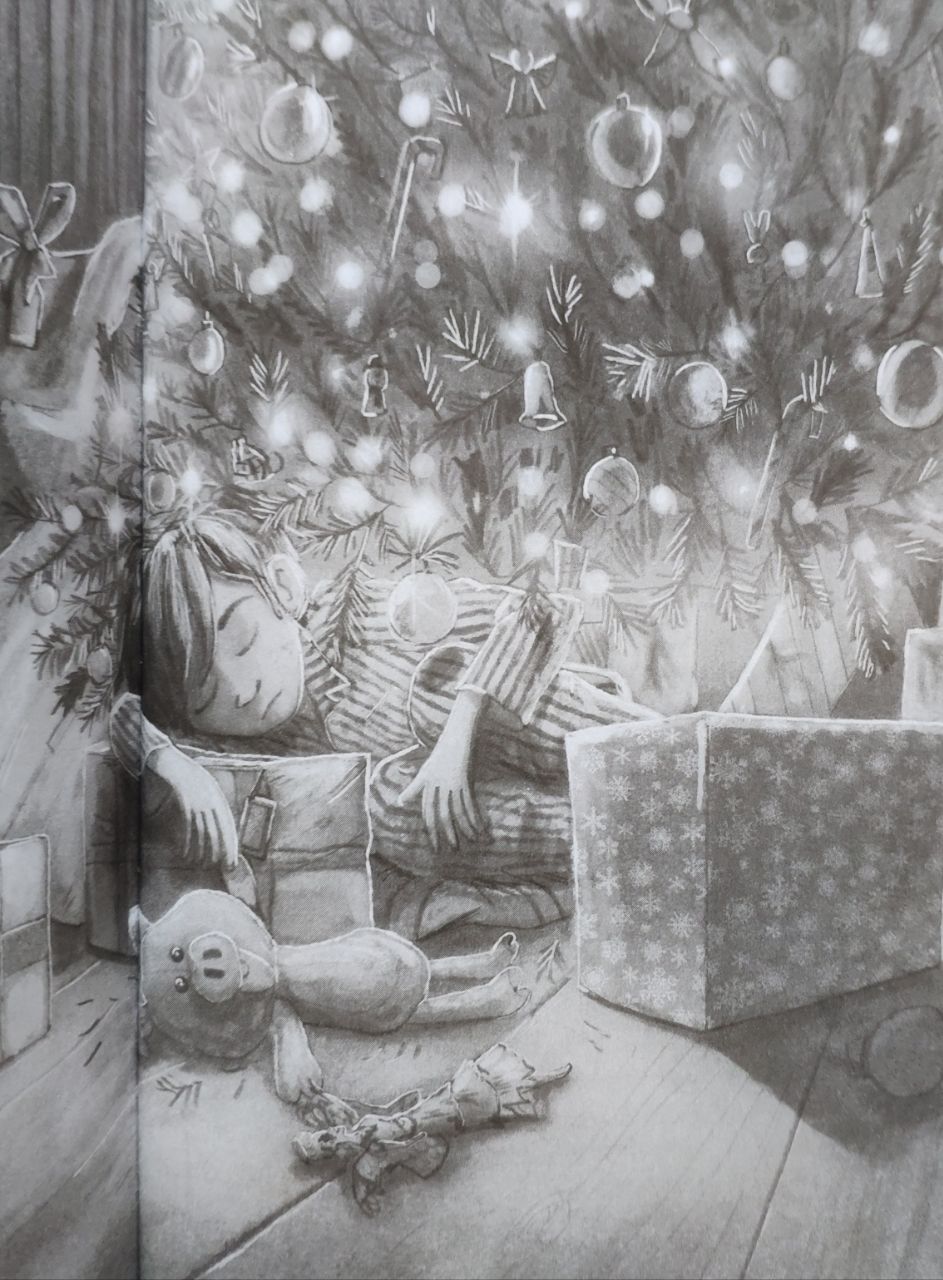 Отдельно восхищение оформлению и черно-белым иллюстрациям. Под цветной суперобложкой лаконичная, приятная на ощупь обложка с золотым поросёнком. Иллюстраций немного (ровно столько, сколько надо на мой вкус), они атмосферные и выразительные.
