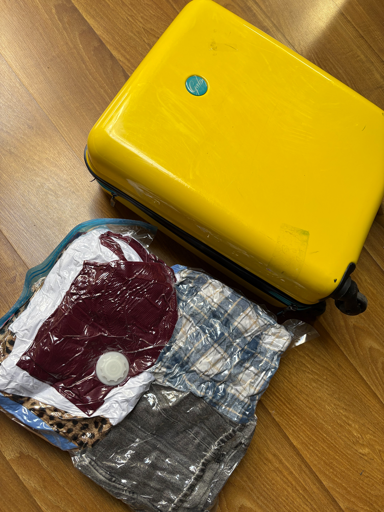 Эксперимент с вакуумацией вещей проведен и чемодан почти собран) Мои шмотки в пакете весят 4 кг)