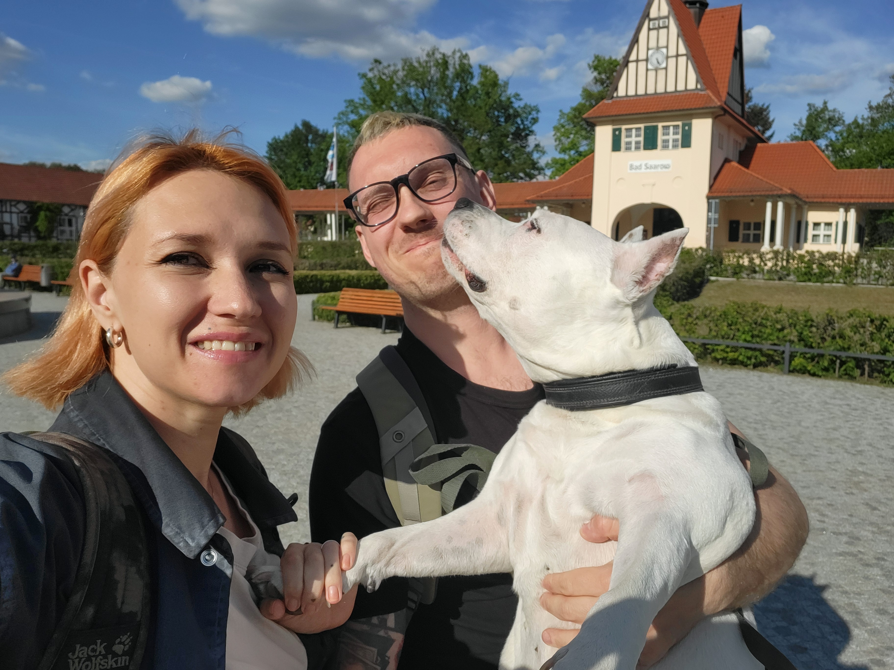 Наша семья: я, мой муж и наша собака — стаффордширский терьер Тира. Сначала мы переехали вдвоем с мужем. Заранее знали, что с породой нашей собачки возникнут проблемы в Германии. Так и вышло. Но мы со всем разобрались и забрали нашего члена семьи.